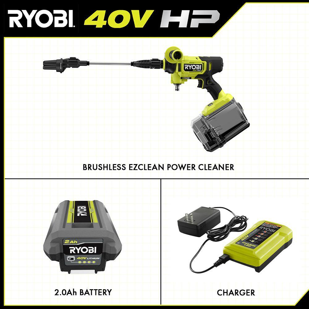 RYOBI RY124052KVNM 40-Volt HP Brushless EZClean 600 PSI 0.7 GPM Cold Water Power Cleaner with 2.0 Ah Battery and Charger