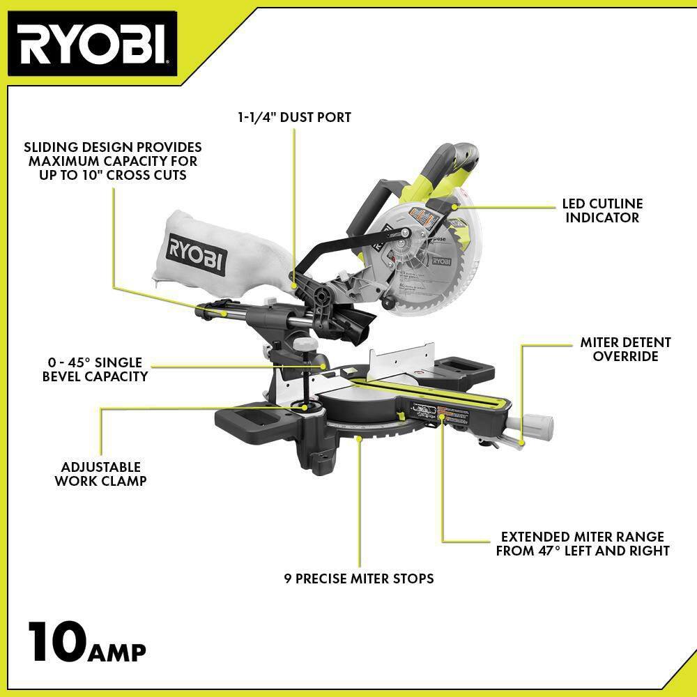 RYOBI TSS702 10 Amp Corded 7-1/4 in. Compound Sliding Miter Saw