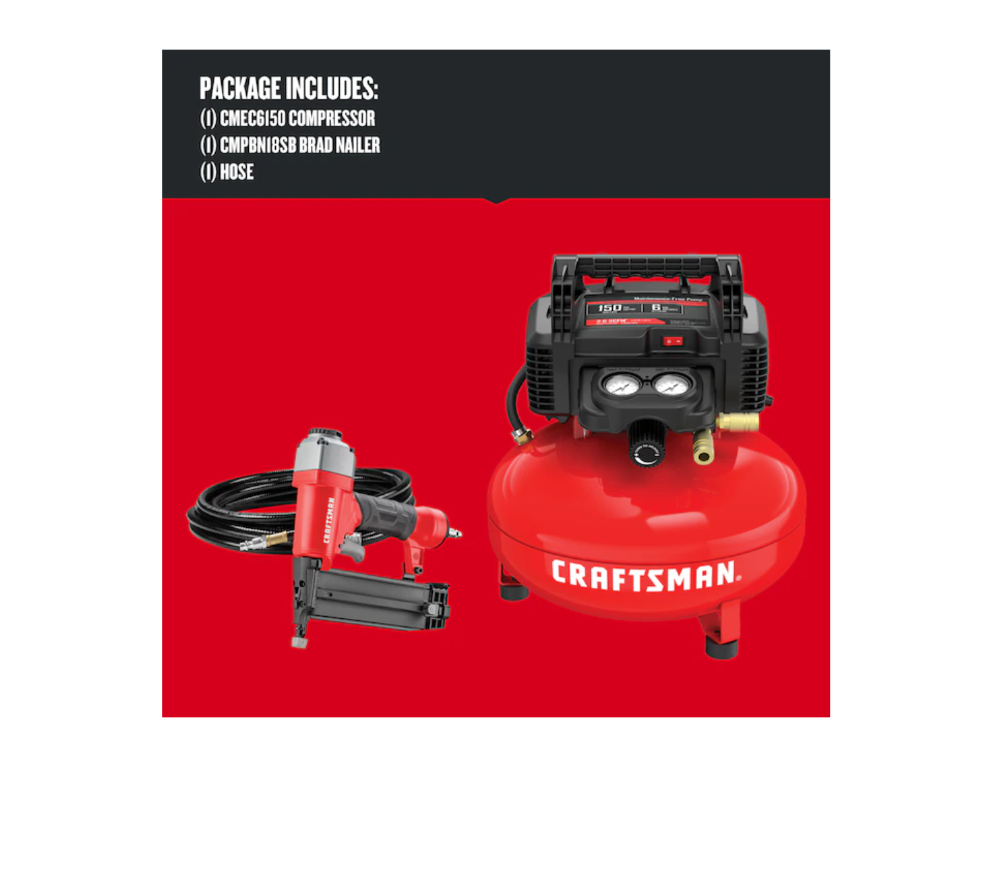 CRAFTSMAN CMEC1KIT18 6-Gallon Single Stage Portable Corded Electric Pancake Air Compressor with Accessories (1-Tool Included)