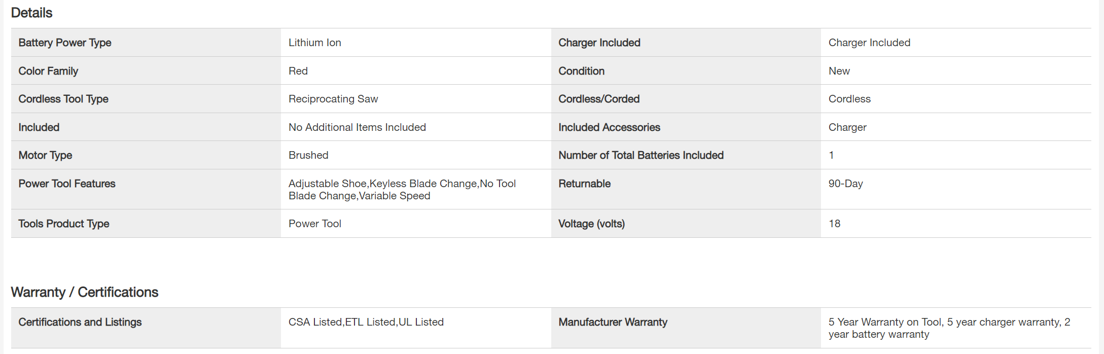 Milwaukee 2621-20-48-59-1835 M18 18V Lithium-Ion Cordless SAWZALL Reciprocating Saw W/ 3.0Ah Battery and Charger
