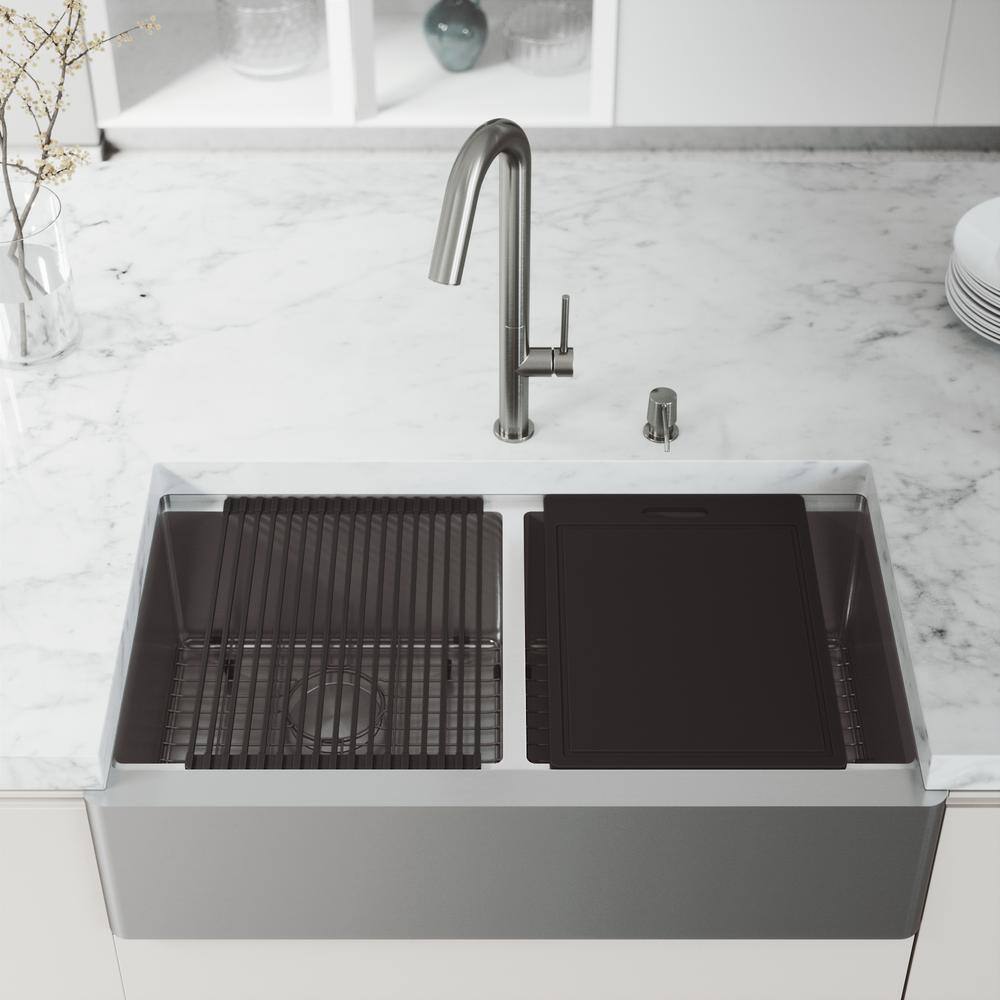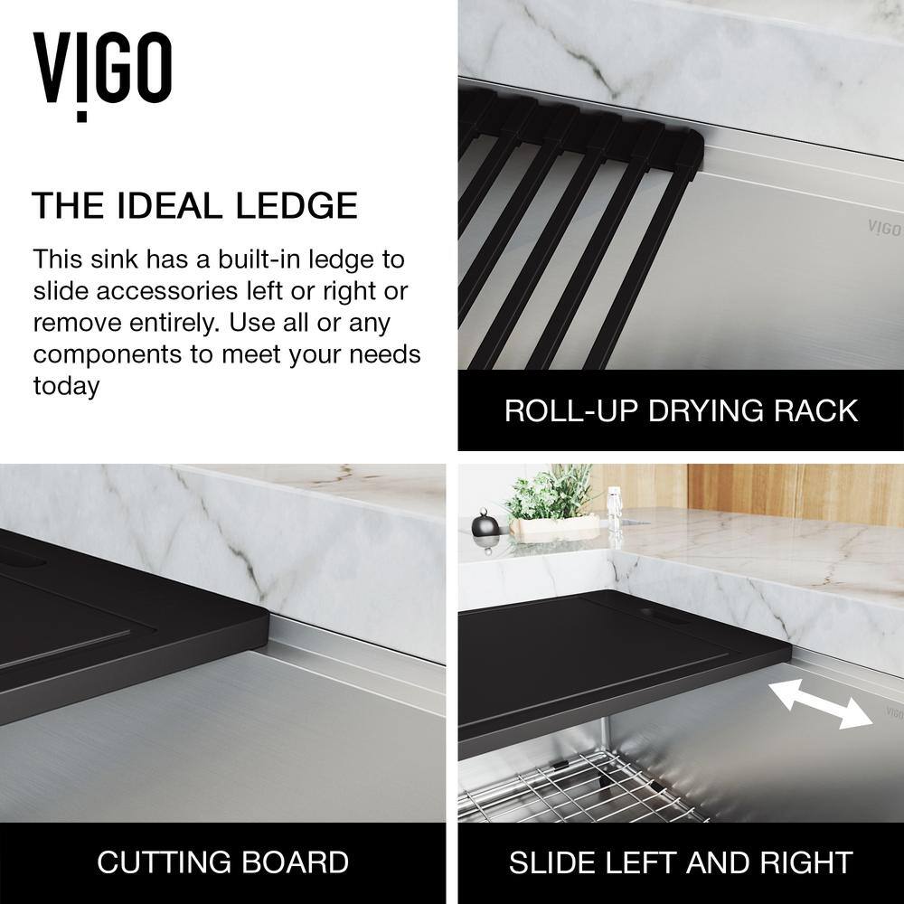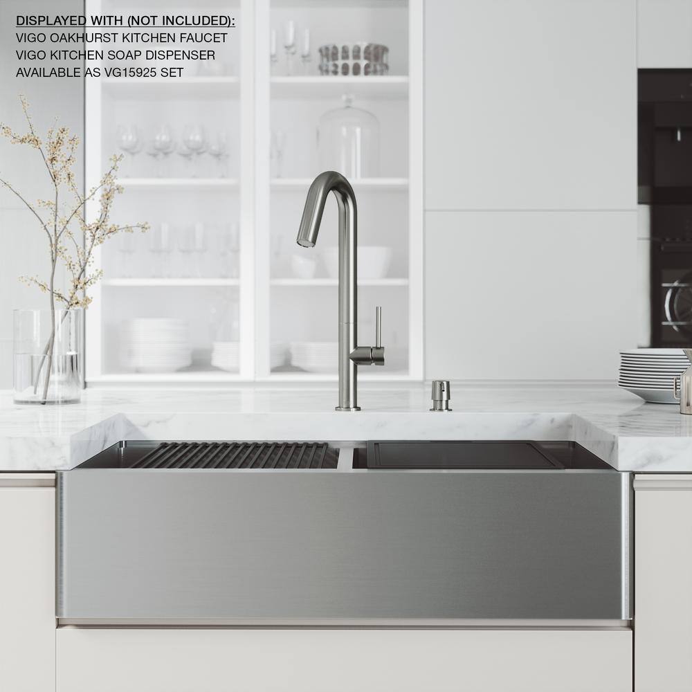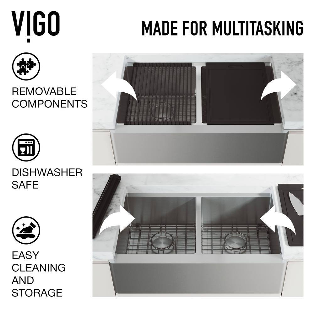 VIGO 1004812066 Oxford 36″ Double Bowl Workstation Undermount Stainless Steel Farmhouse Sink with Ledge and Accessories