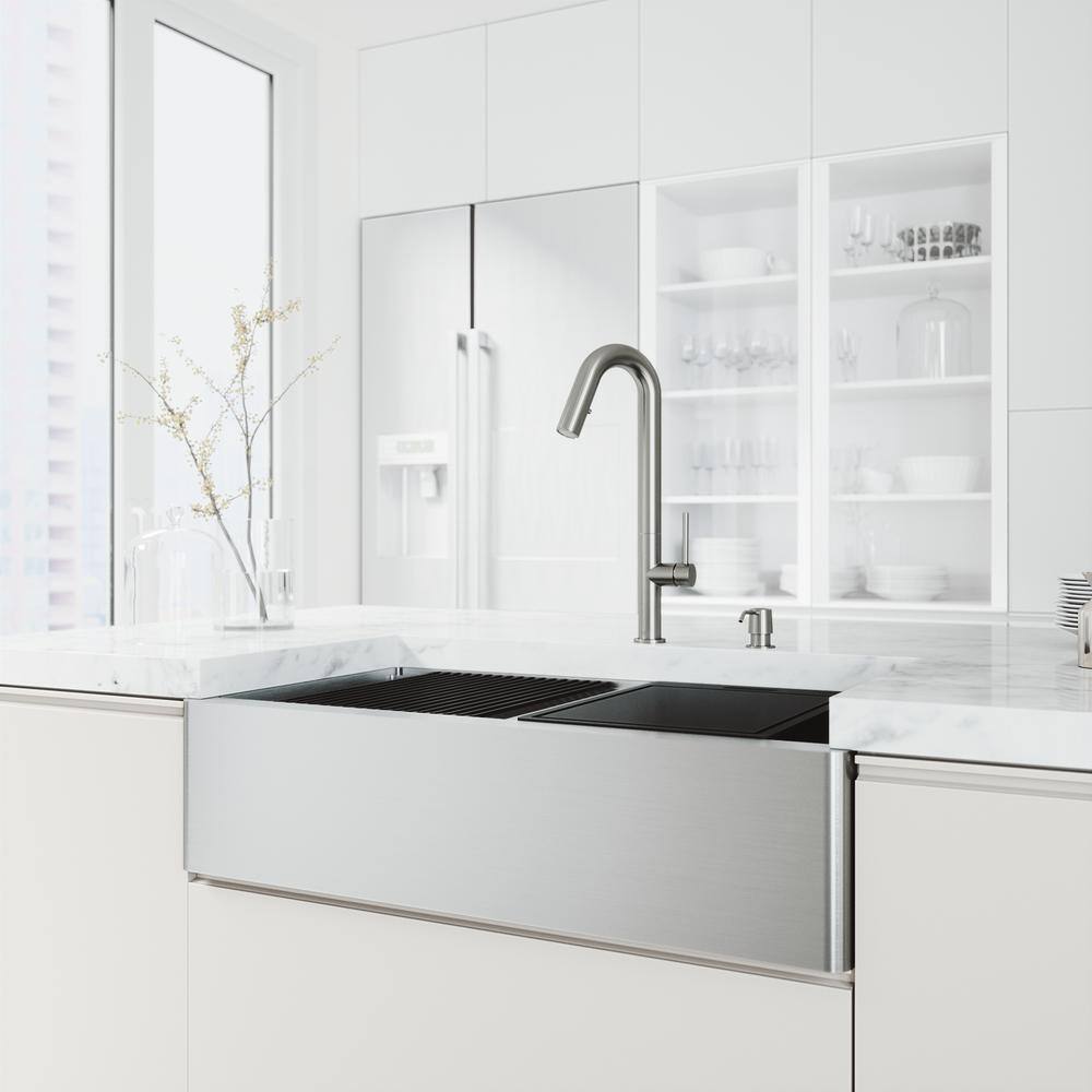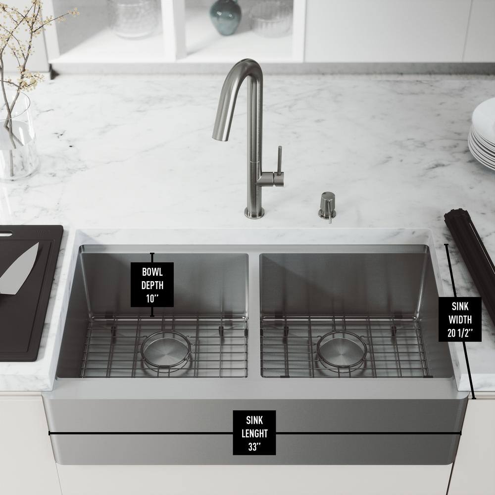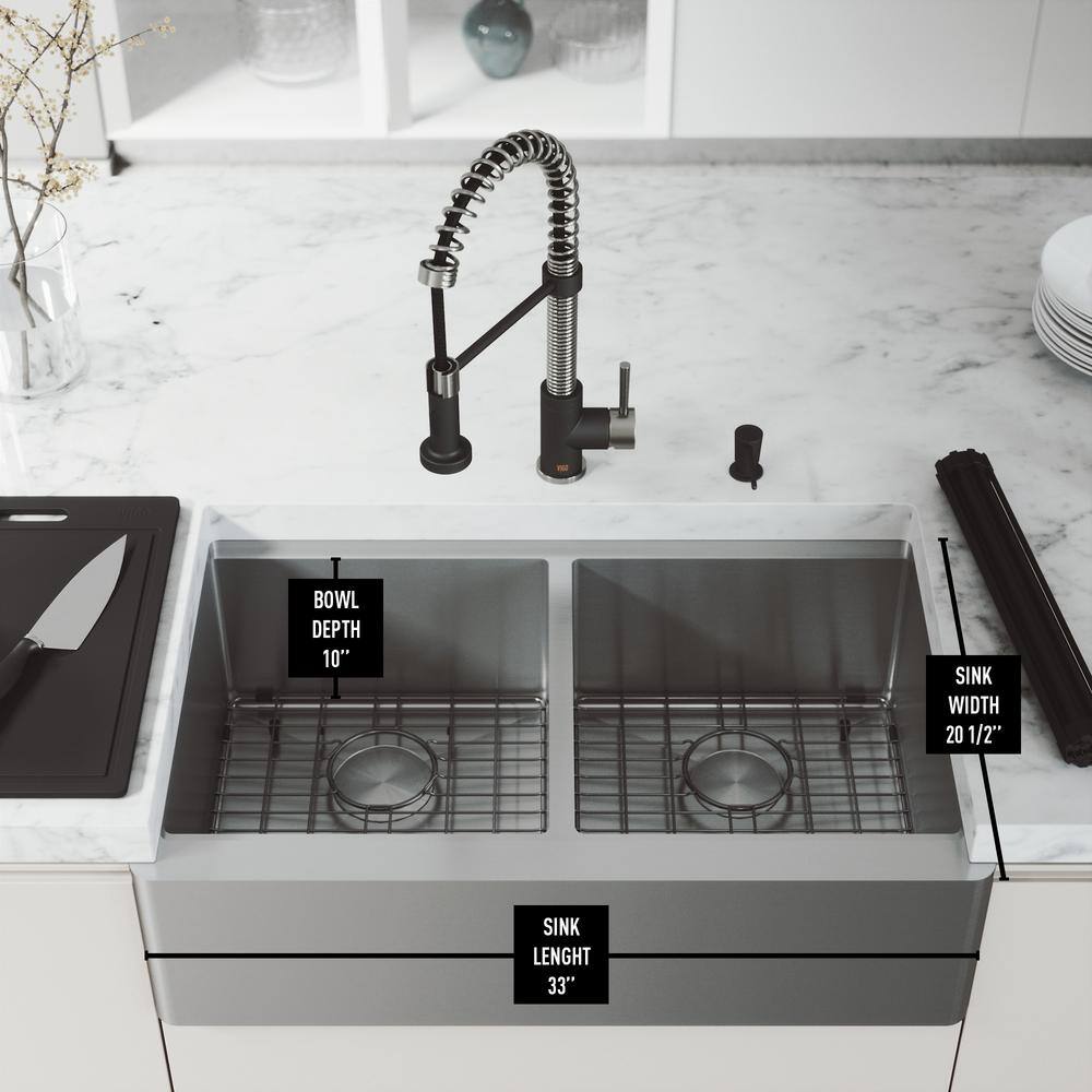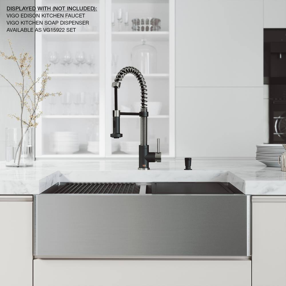 VIGO 1004812066 Oxford 36″ Double Bowl Workstation Undermount Stainless Steel Farmhouse Sink with Ledge and Accessories