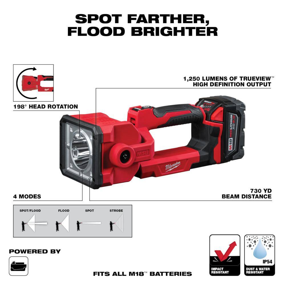 Milwaukee 2836-21-2354-20-48-11-1862 M18 FUEL 18V Lithium-Ion Cordless Brushless Oscillating Multi-Tool Kit with LED Search Light and (2) 6.0Ah Batteries