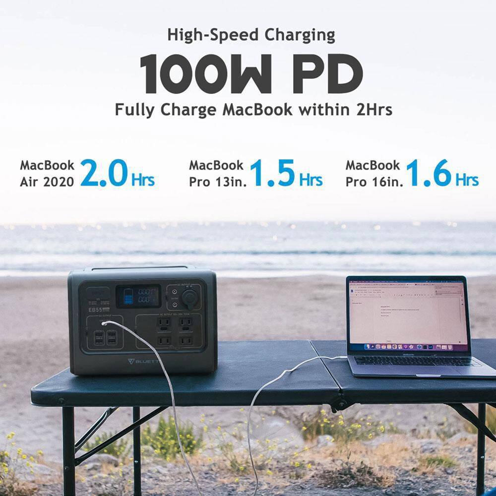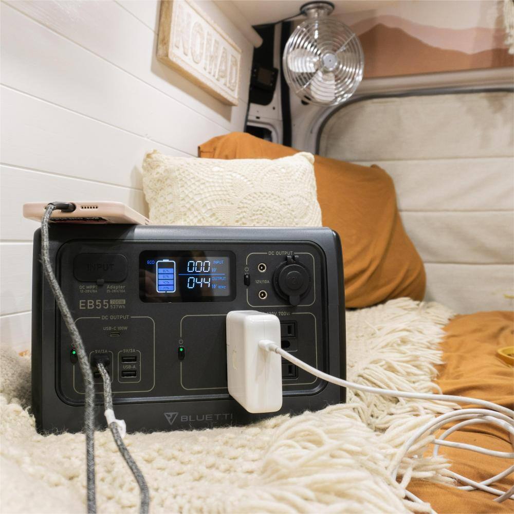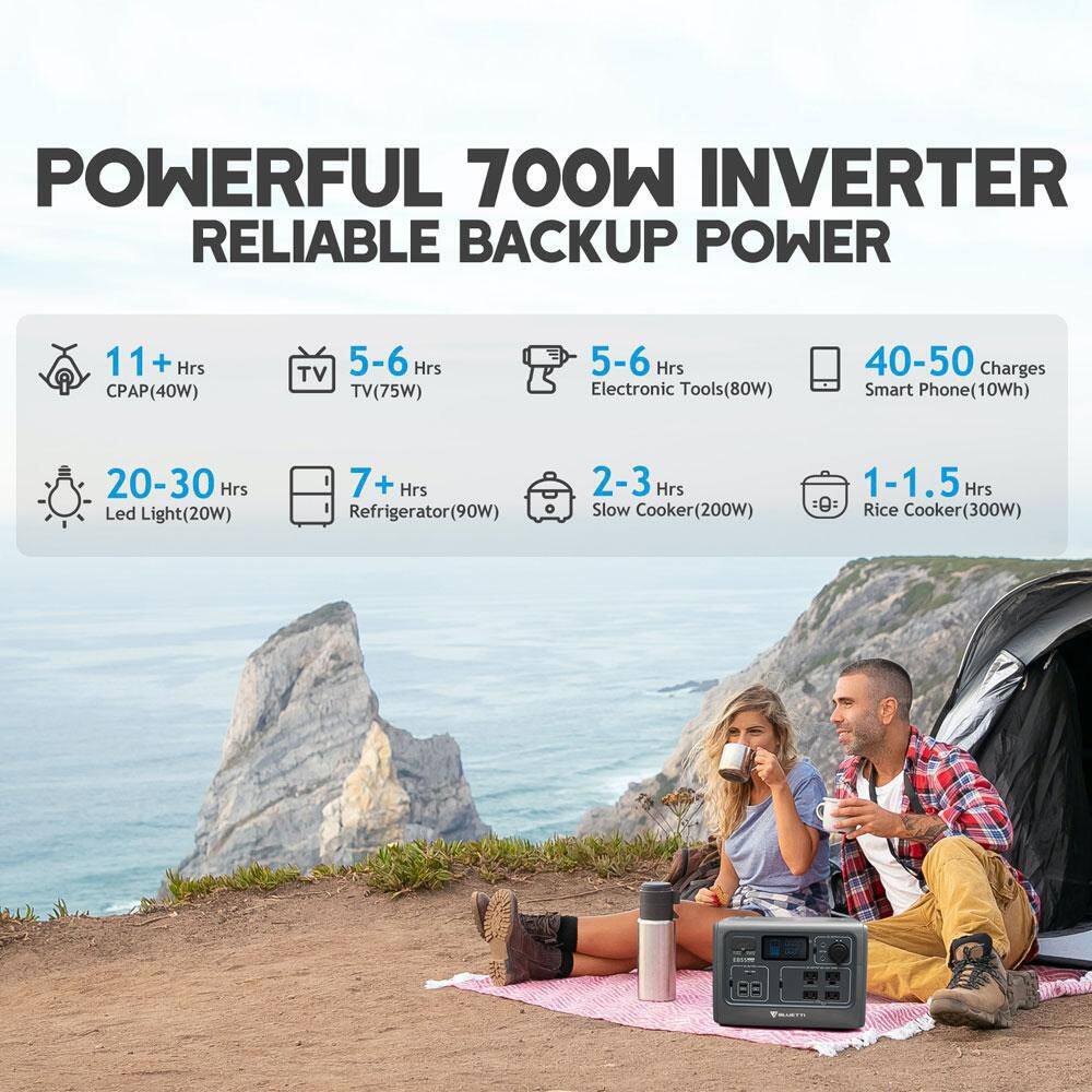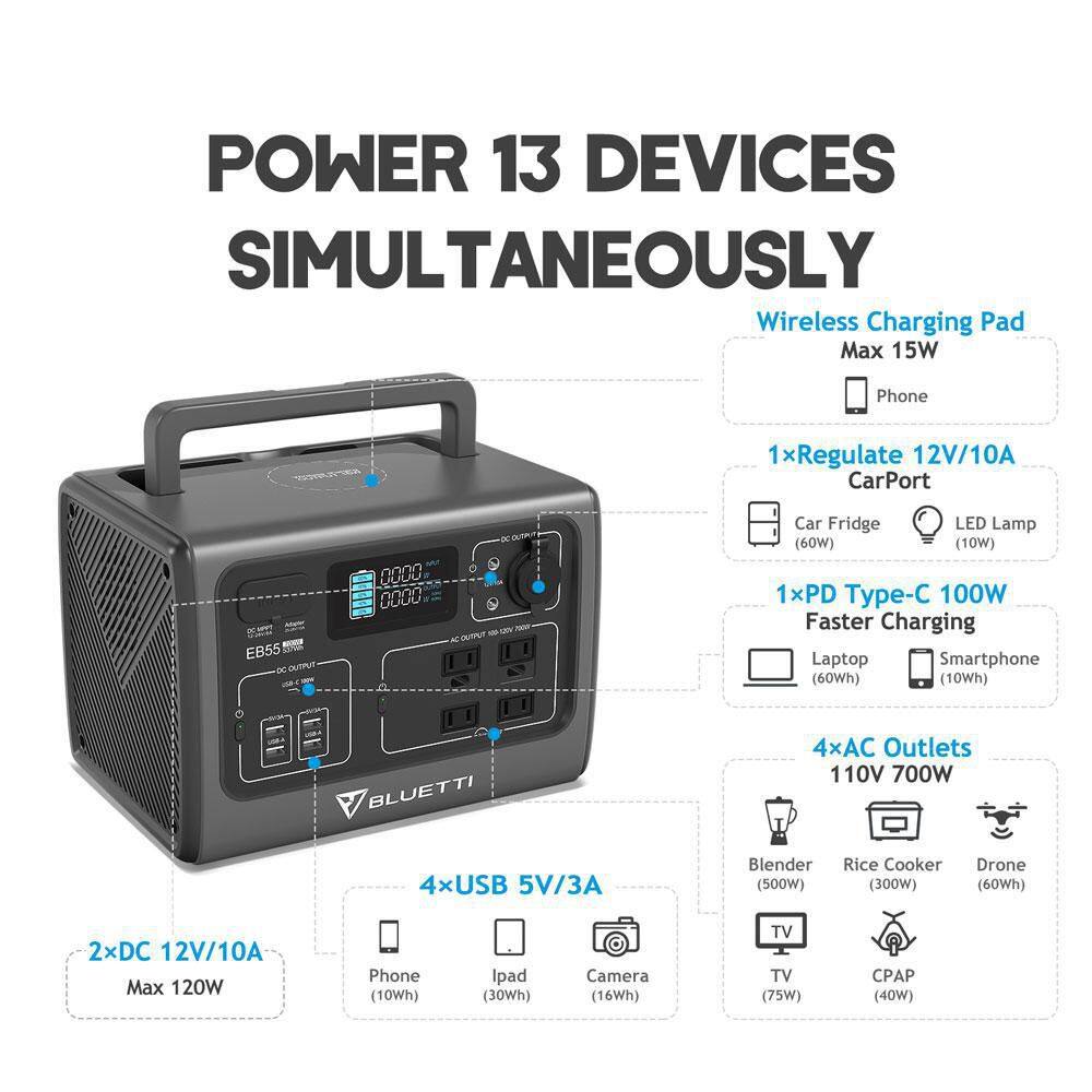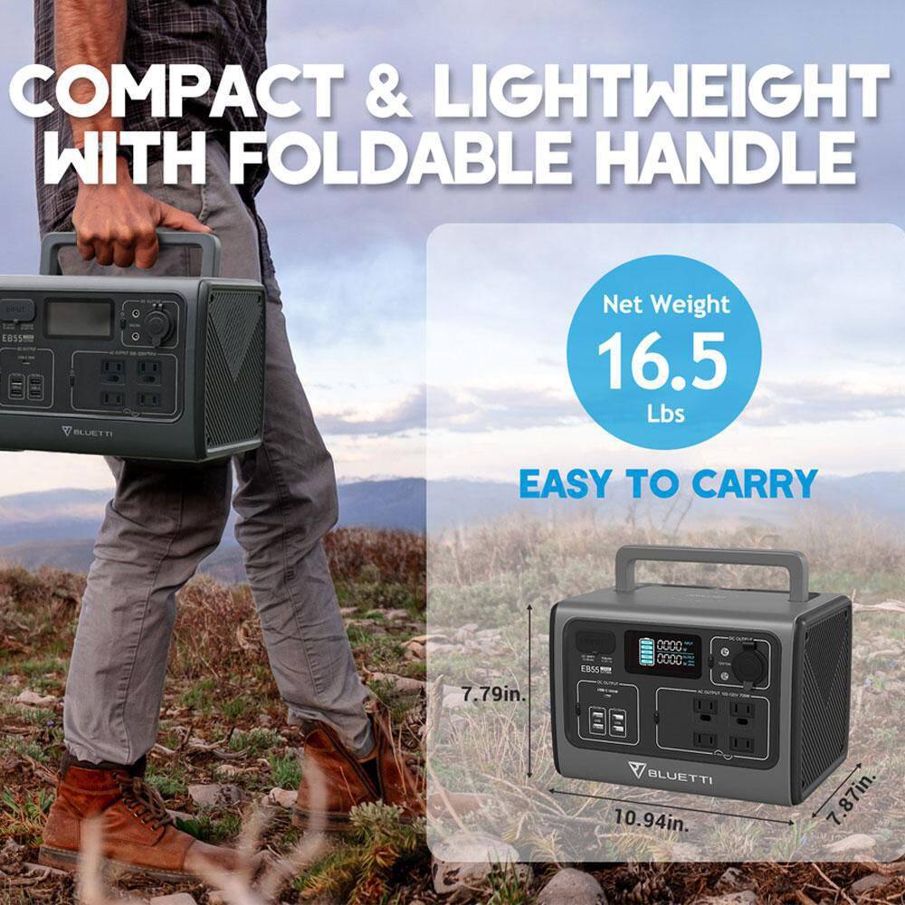 BLUETTI EB55GR 700W Continuous/1400W Peak Output Power Station EB55 Gray Push Button Start LiFePO4 Battery Solar Generator for Outdoors