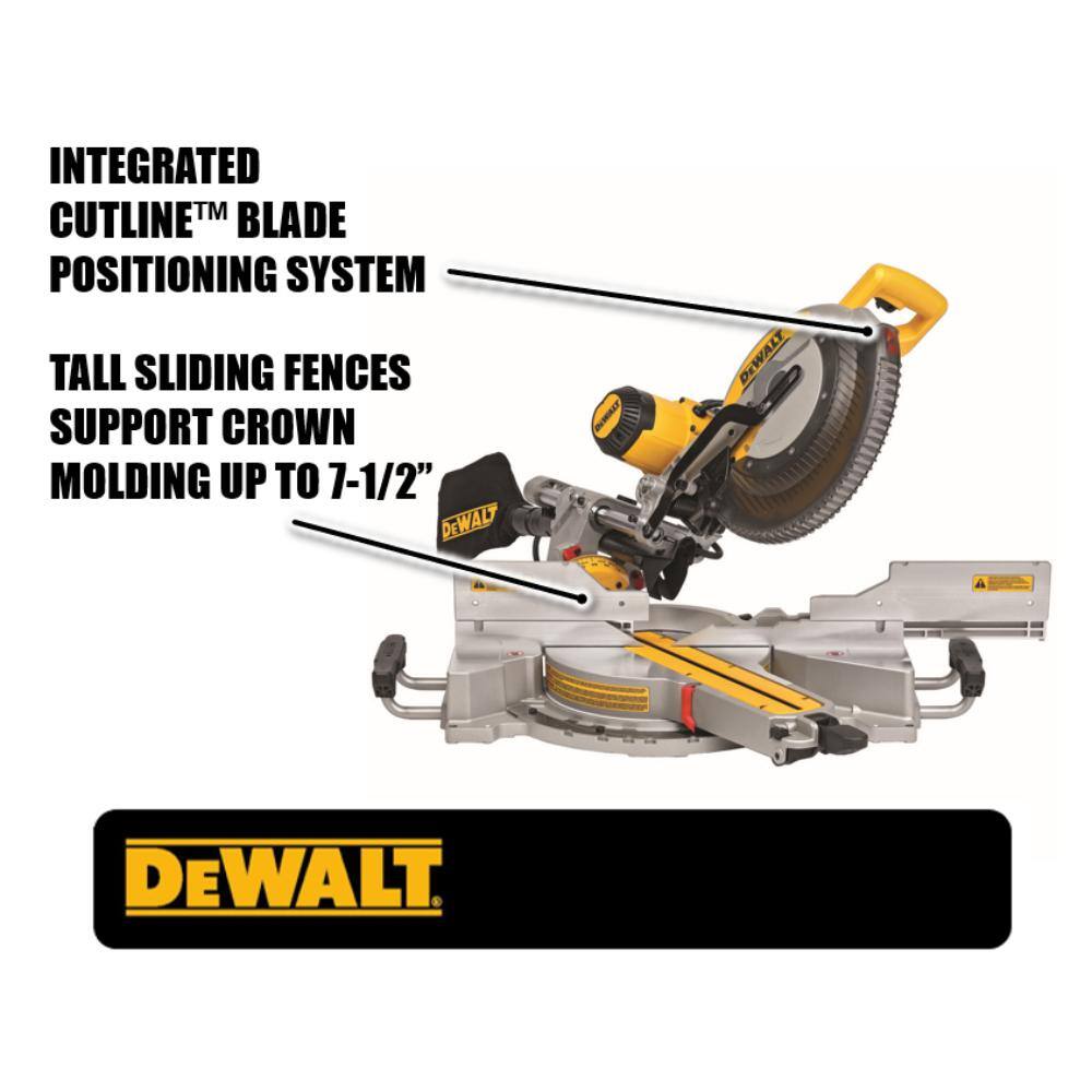 DEWALT DWS780 15 Amp Corded 12 in. Double Bevel Sliding Compound Miter Saw with XPS technology. Blade Wrench and Material Clamp