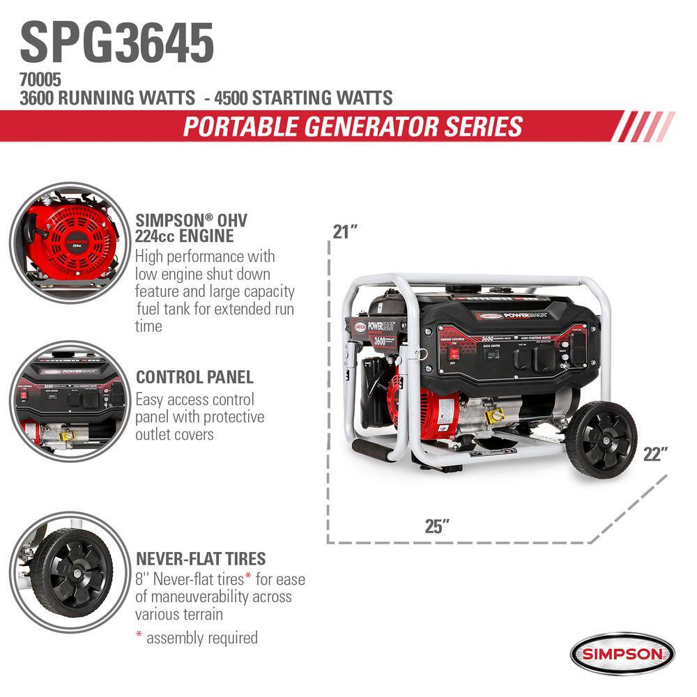 SIMPSON 70069 PowerShot 3400-Watt Recoil Start Gas Portable Generator