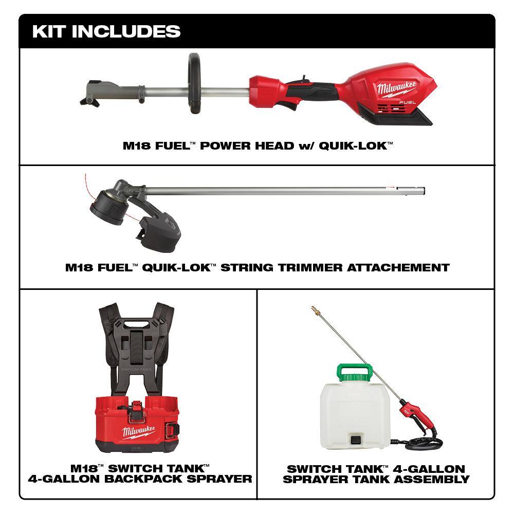 Milwaukee 2825-20ST-2820-20PS M18 18-Volt Lithium-Ion Cordless Switch Tank Backpack Pesticide Sprayer and FUEL QUIK-LOK String Grass Trimmer Combo Kit