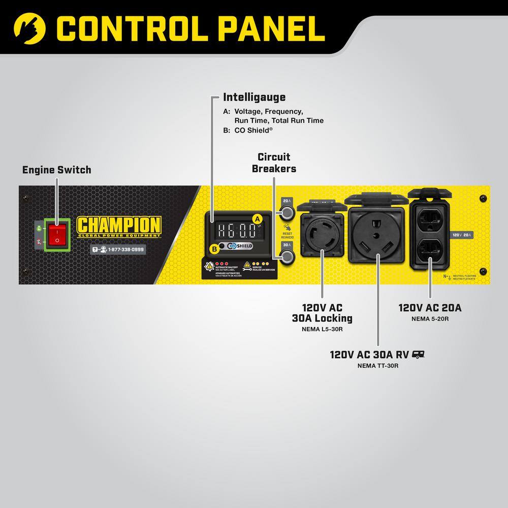 Champion Power Equipment 201119 4550-Watt/3650-Watt Recoil Start Gasoline Powered RV Ready Portable Generator with CO Shield
