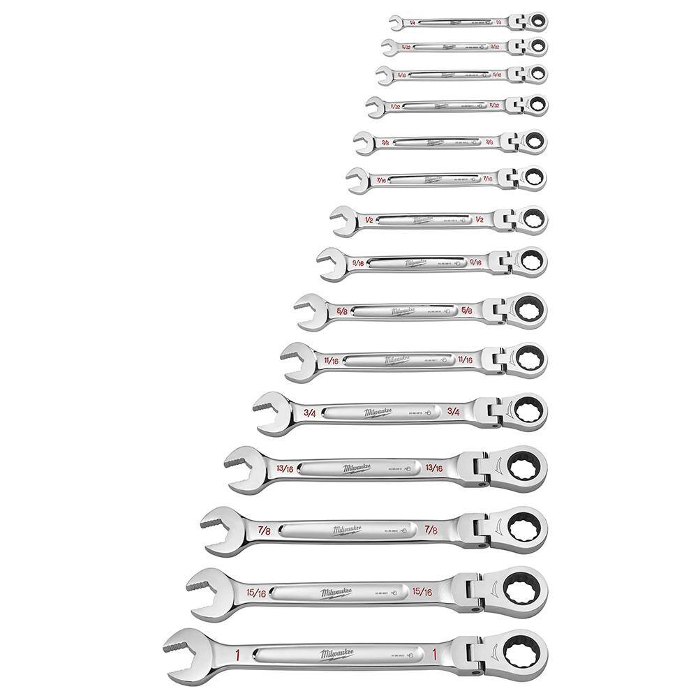 Milwaukee 48-22-9413-48-22-9513 144-Position Flex-Head Ratcheting Combination Wrench Set SAE and METRIC (30-Piece)