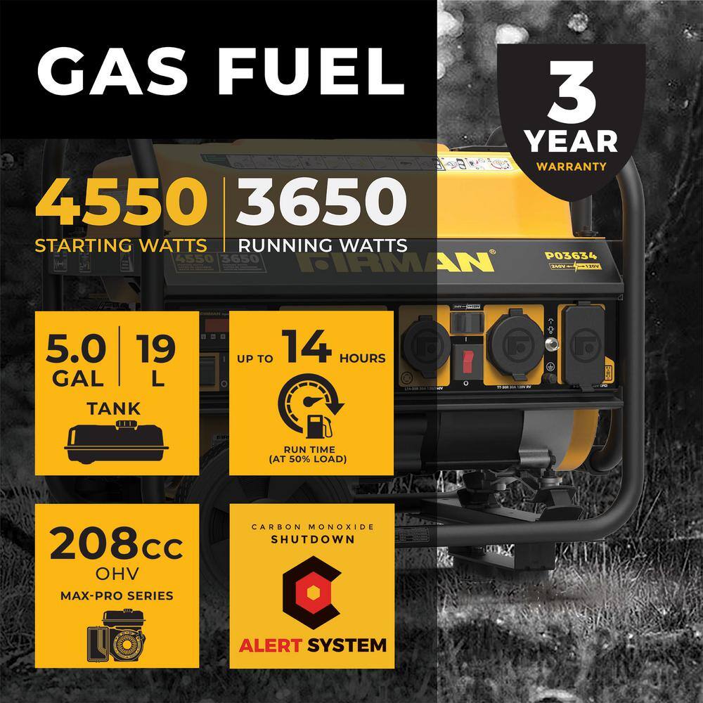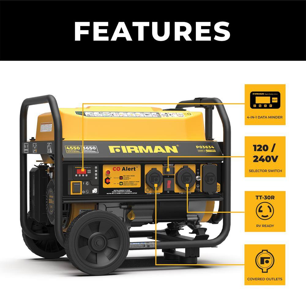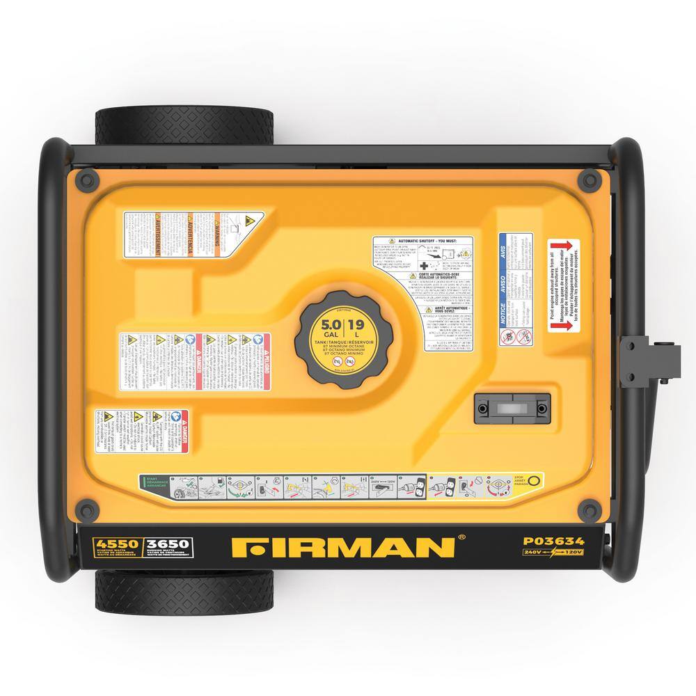 FIRMAN P03634 4.550-Watt/3.650-Watt Gas Recoil Start Portable Generator Powered RV Ready with CO Alert Technology