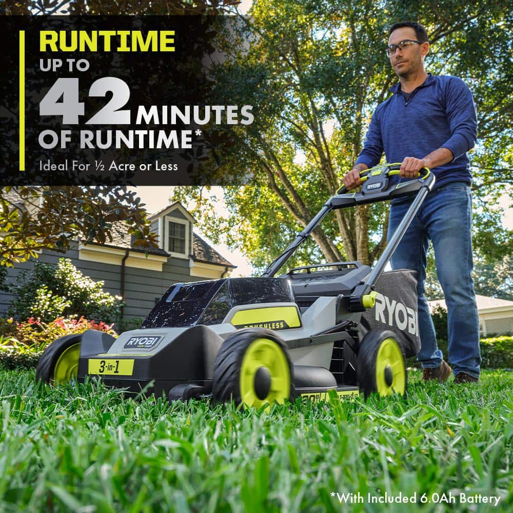 RYOBI RY401180VNM 40V HP Brushless 20 in. Cordless Electric Battery Walk Behind Self-Propelled Mower with 6.0 Ah Battery and Charger