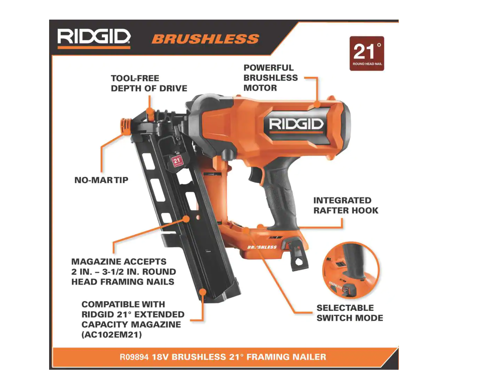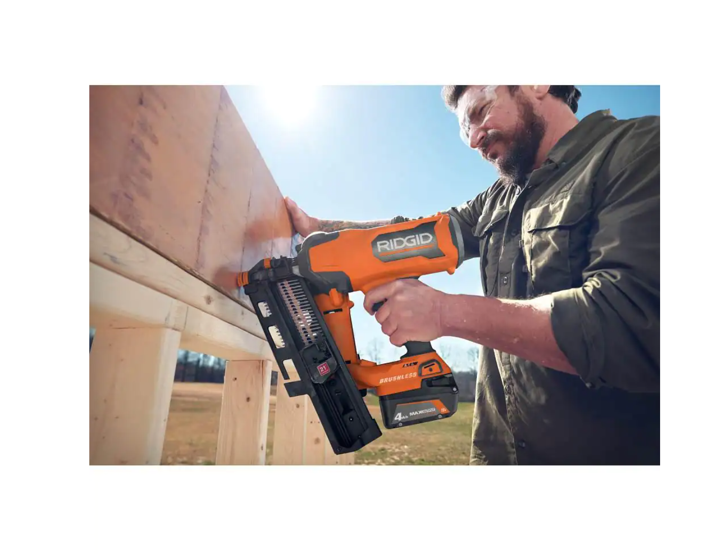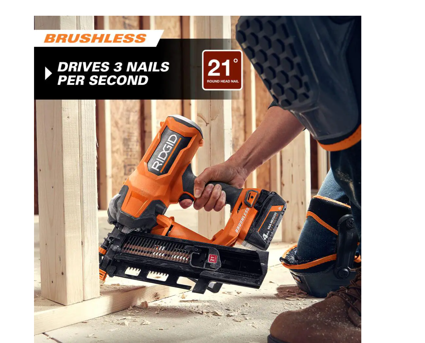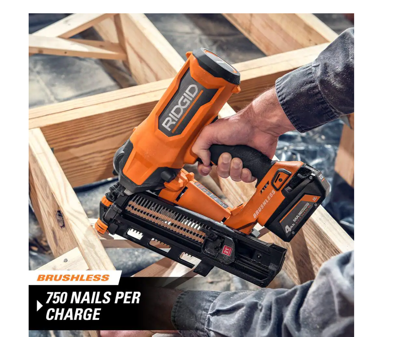 RIDGID R09894B-AC8400802P 18V Lithium-Ion Brushless Cordless 21° 3-1/2 in. Framing Nailer with 18V Compact Lithium-Ion 2.0 Ah Battery 2-Pack