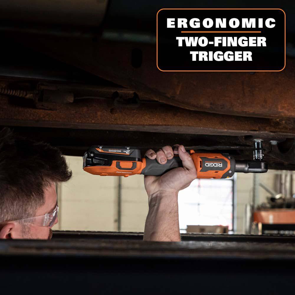 RIDGID R866012B-AC93044SBN 18V Brushless Cordless 1/2 in. Ratchet with (2) 4.0 Ah Batteries. Charger. and Bag