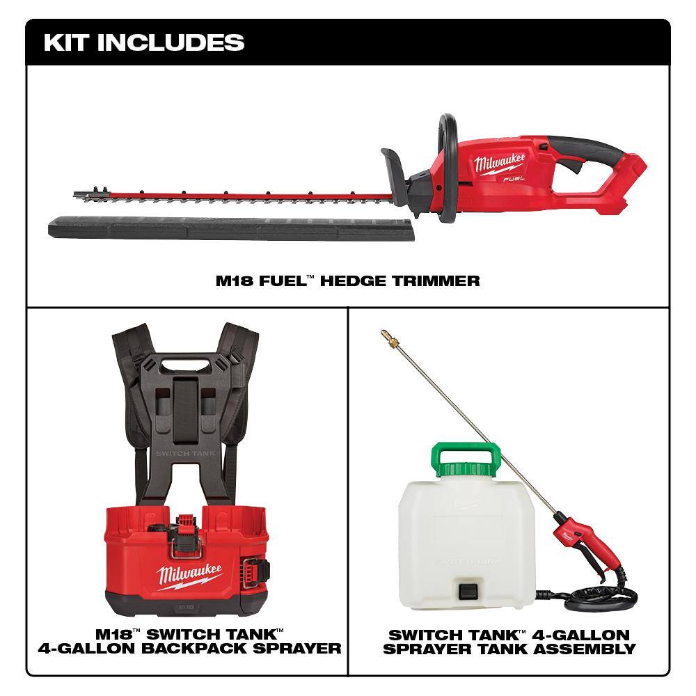 Milwaukee 2726-20-2820-20PS M18 18-Volt Lithium-Ion Cordless Switch Tank Backpack Pesticide Sprayer and FUEL Hedge Trimmer Combo Kit