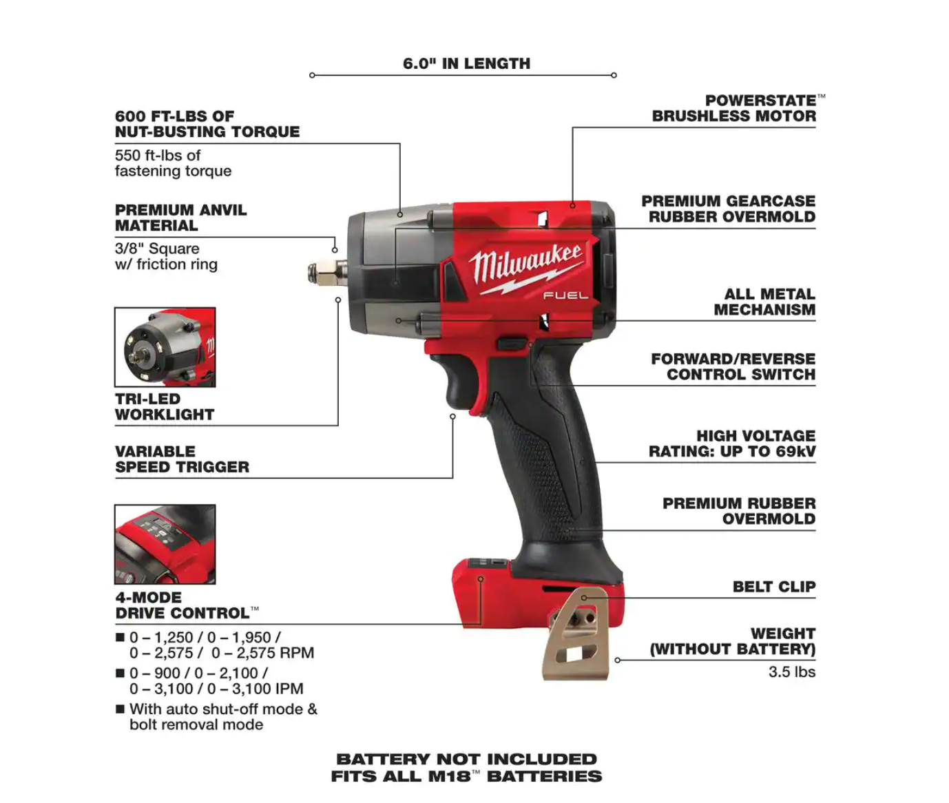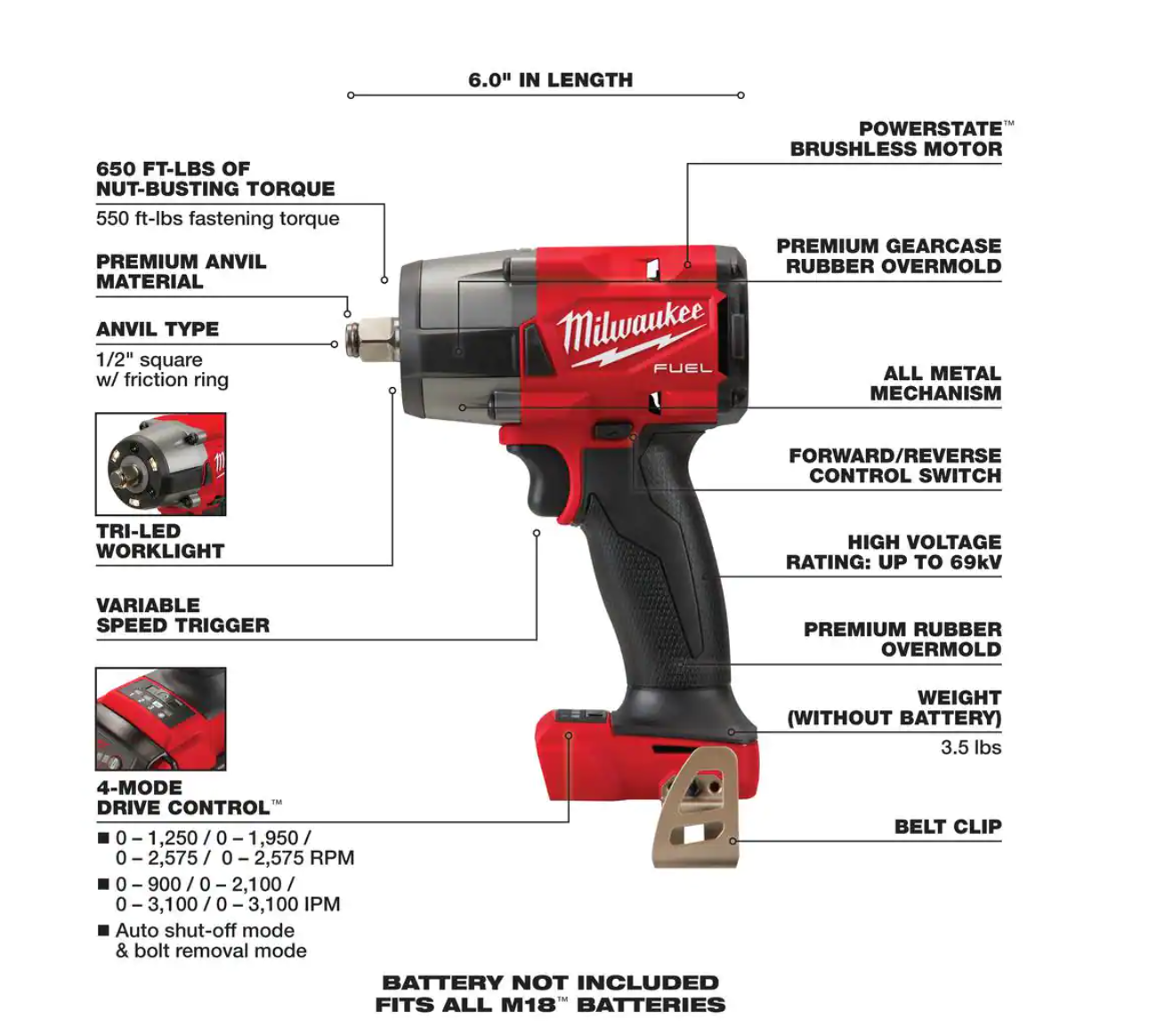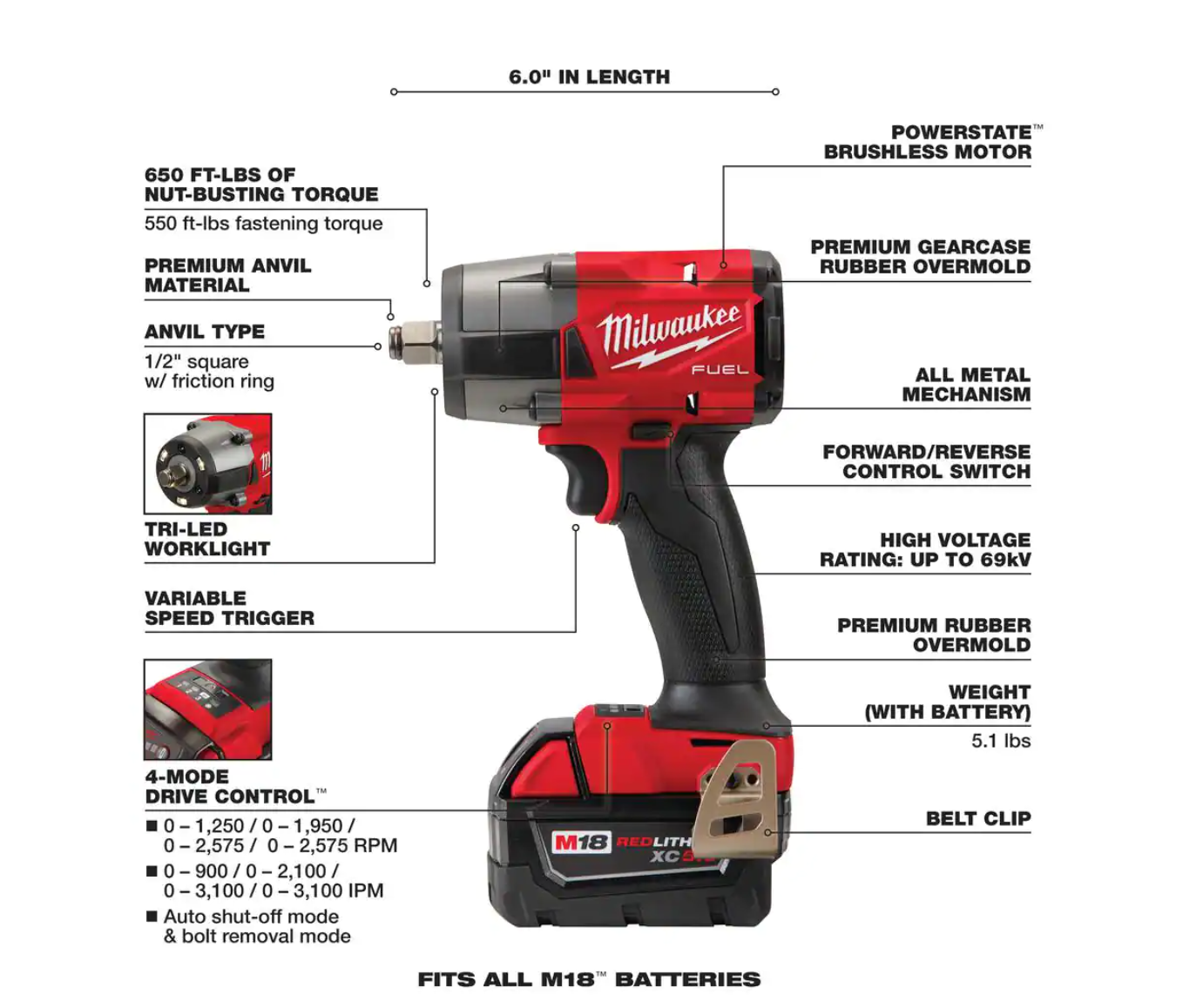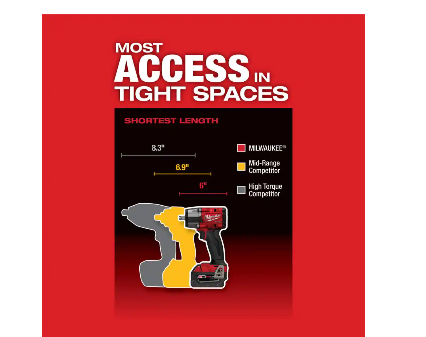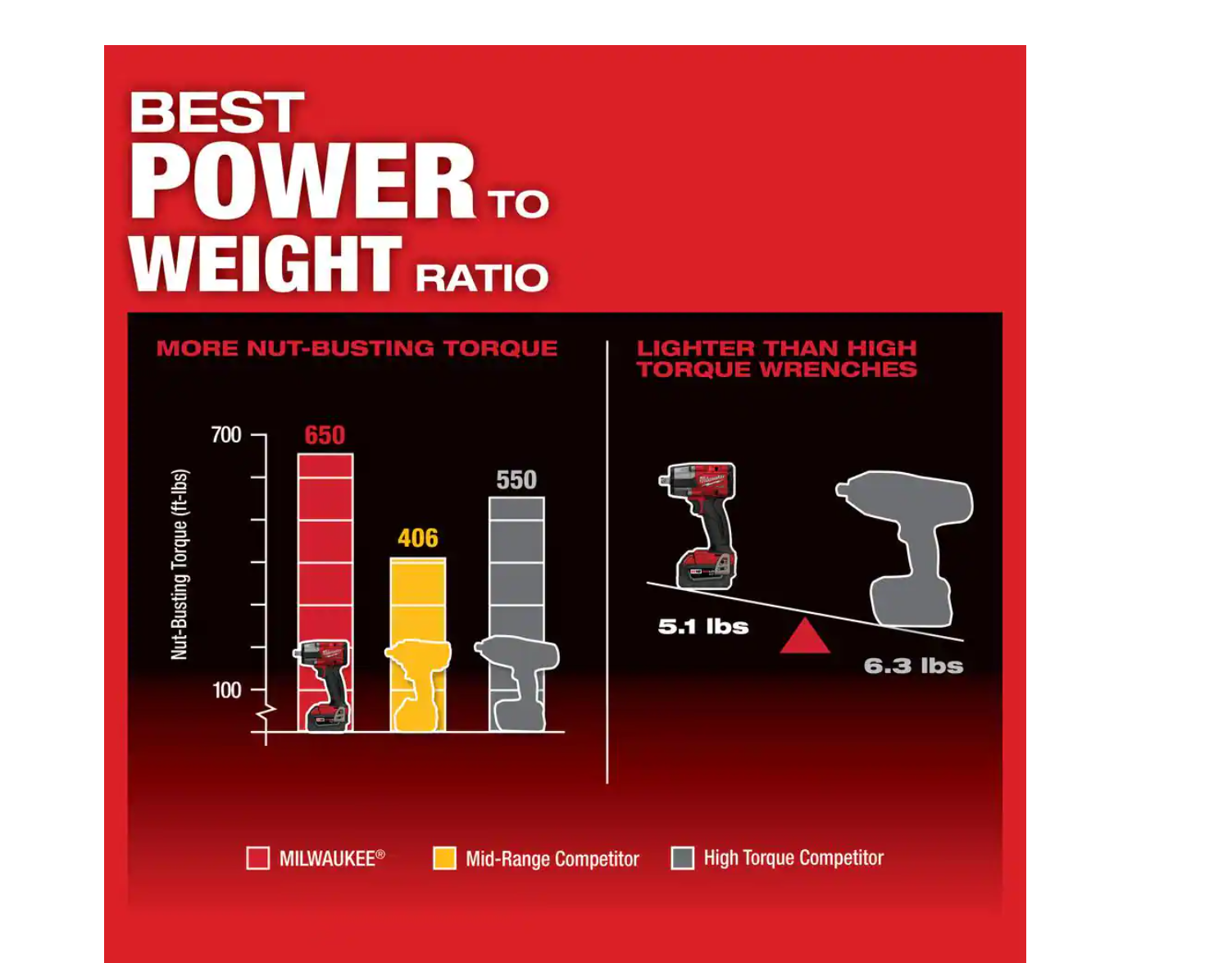 Milwaukee 2767-20-2962-20 M18 FUEL 18V Lithium-Ion Brushless Cordless 1/2 in. Impact Wrench with Mid Torque Impact Wrench (2-Tool)