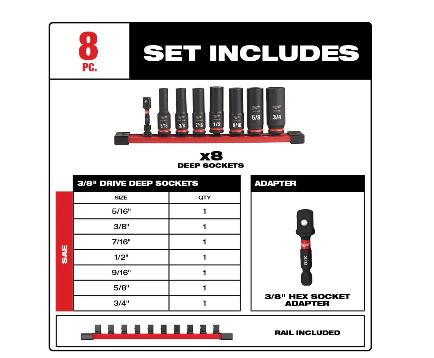 Milwaukee 2962-22-49-66-7024 M18 FUEL GEN-2 18V Lithium-Ion Mid Torque Brushless Cordless 3/8 in. Impact Wrench Kit with Socket Set (8-Piece)