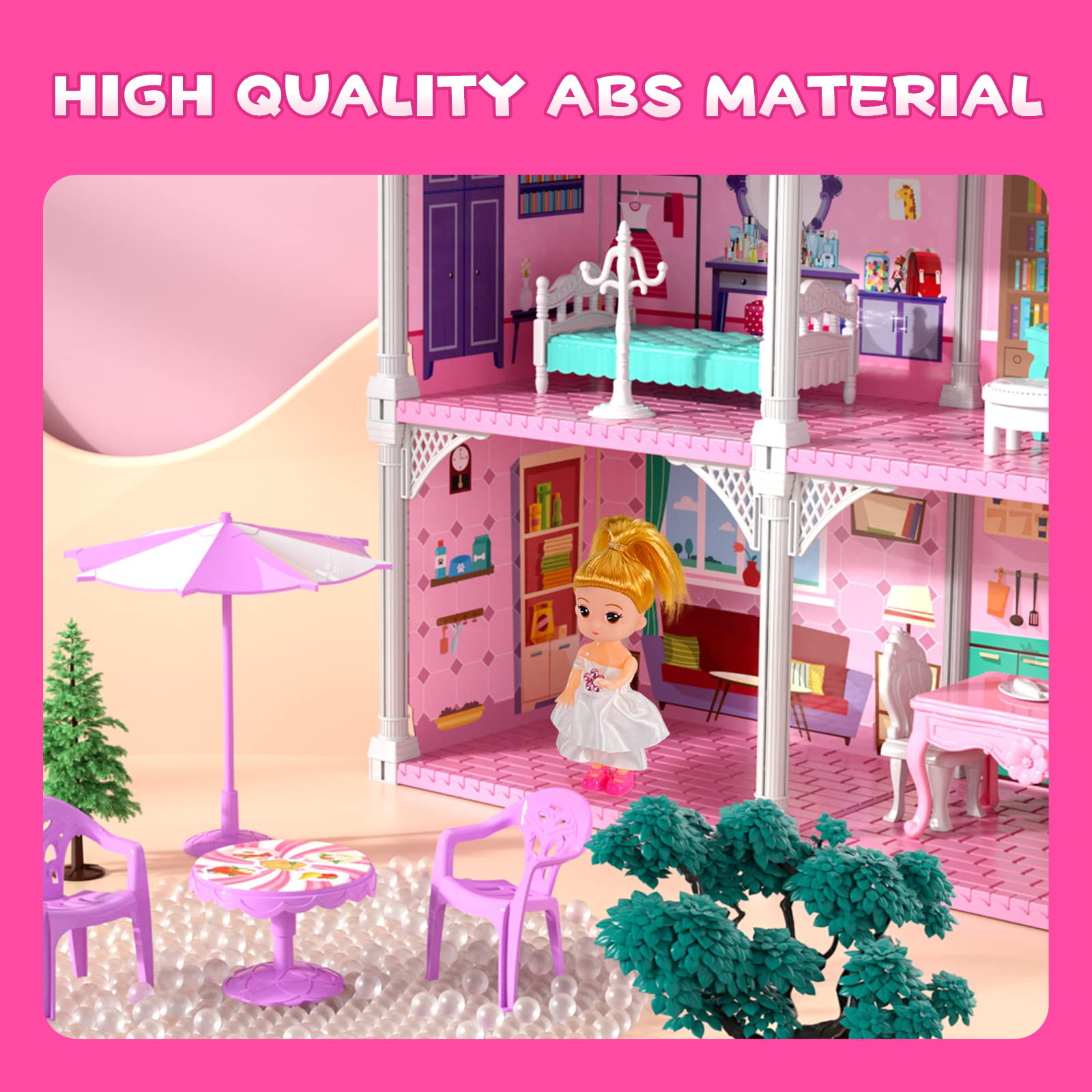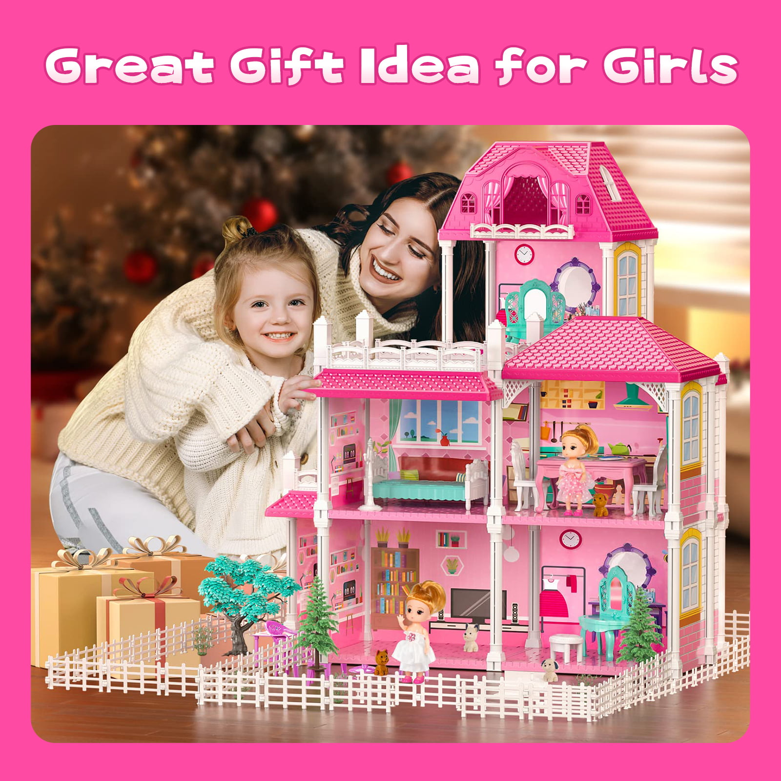 HopeRock Dollhouse Toys for Girls. 6 Rooms Doll House Furnitures with Slide. Dream House Doll House for Girls Boys Age 3+