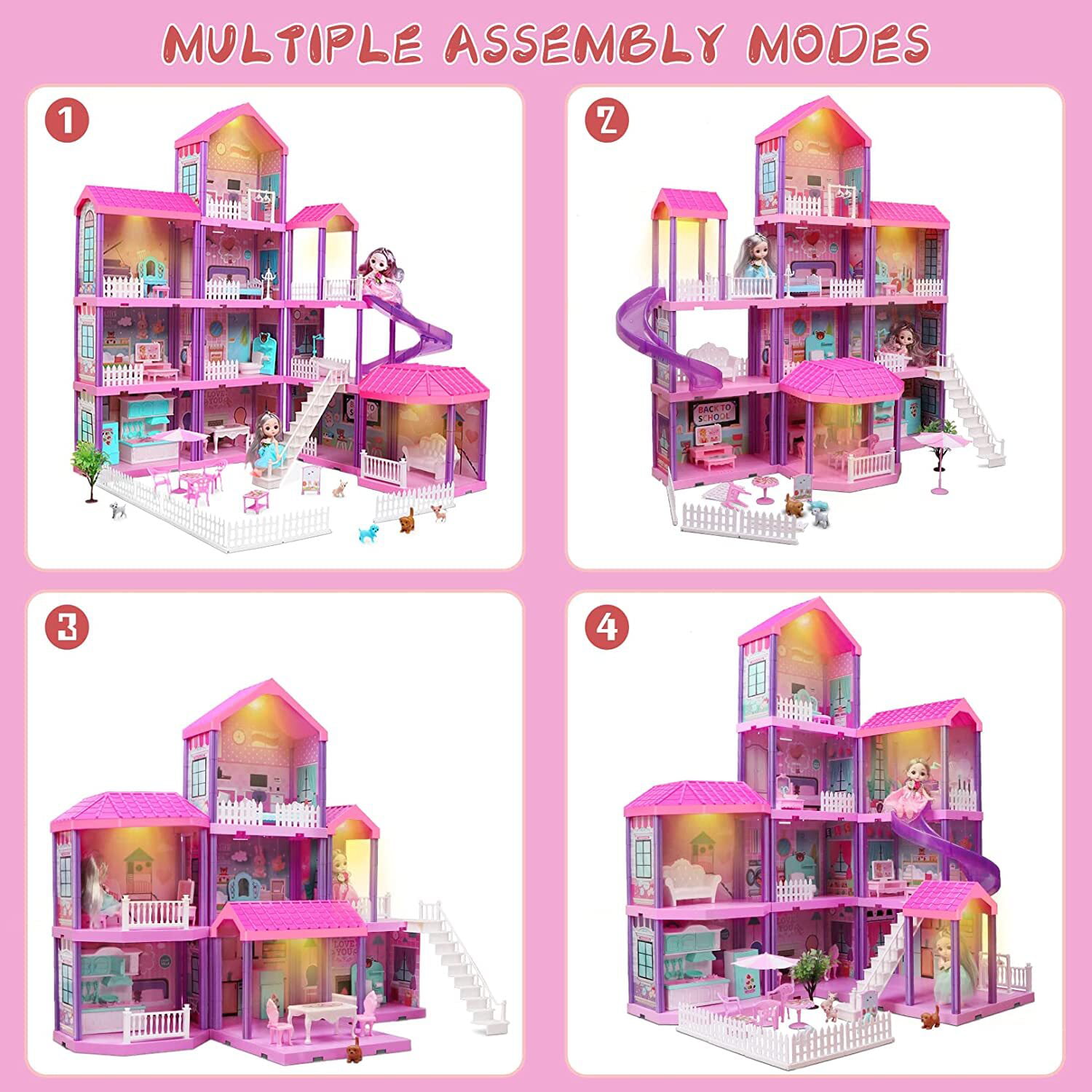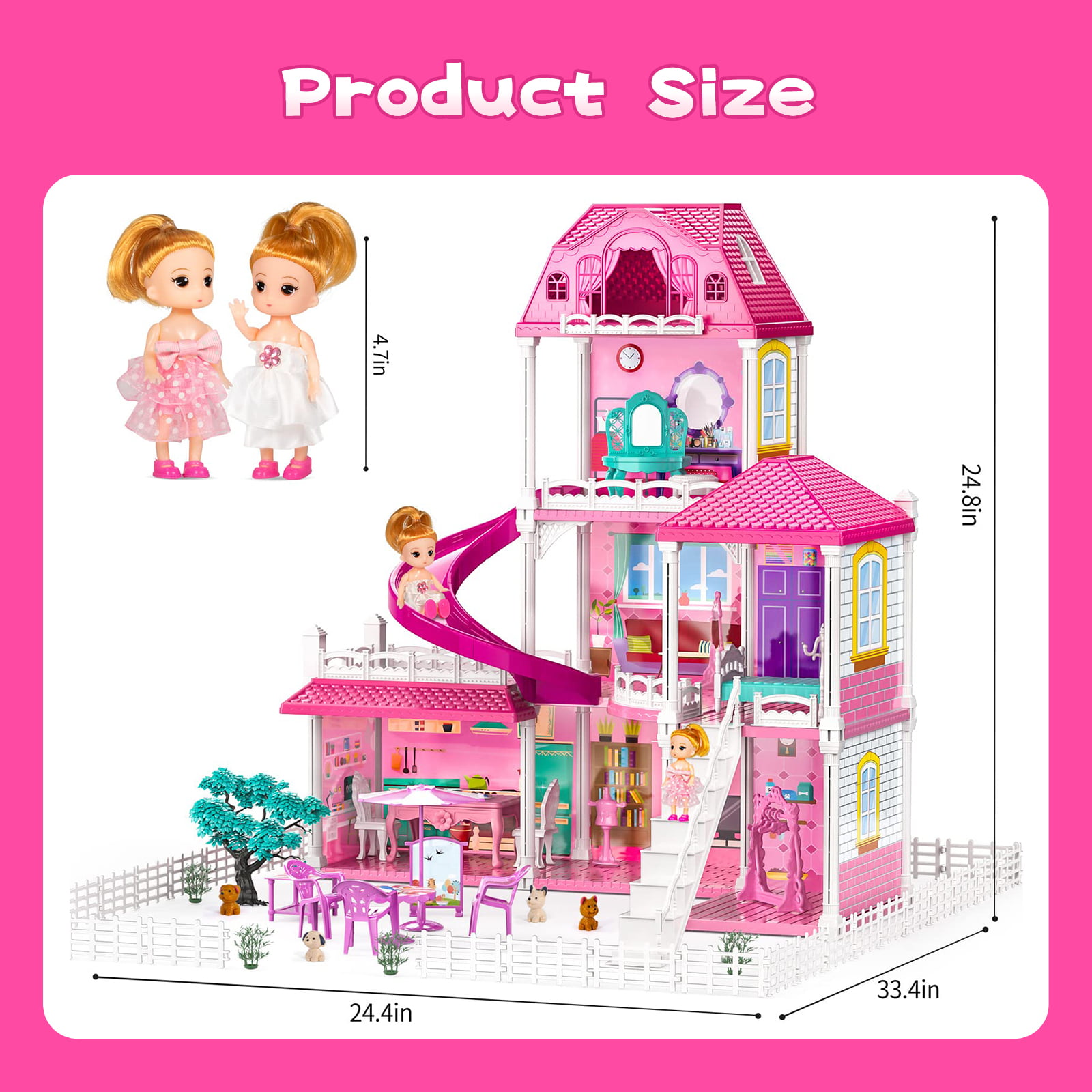Beefunni 36 inch Dollhouse with Slide.Dolls and 11 Rooms.Creative Dollhouse Toys Gift for 3 to 8 Year Old Girls