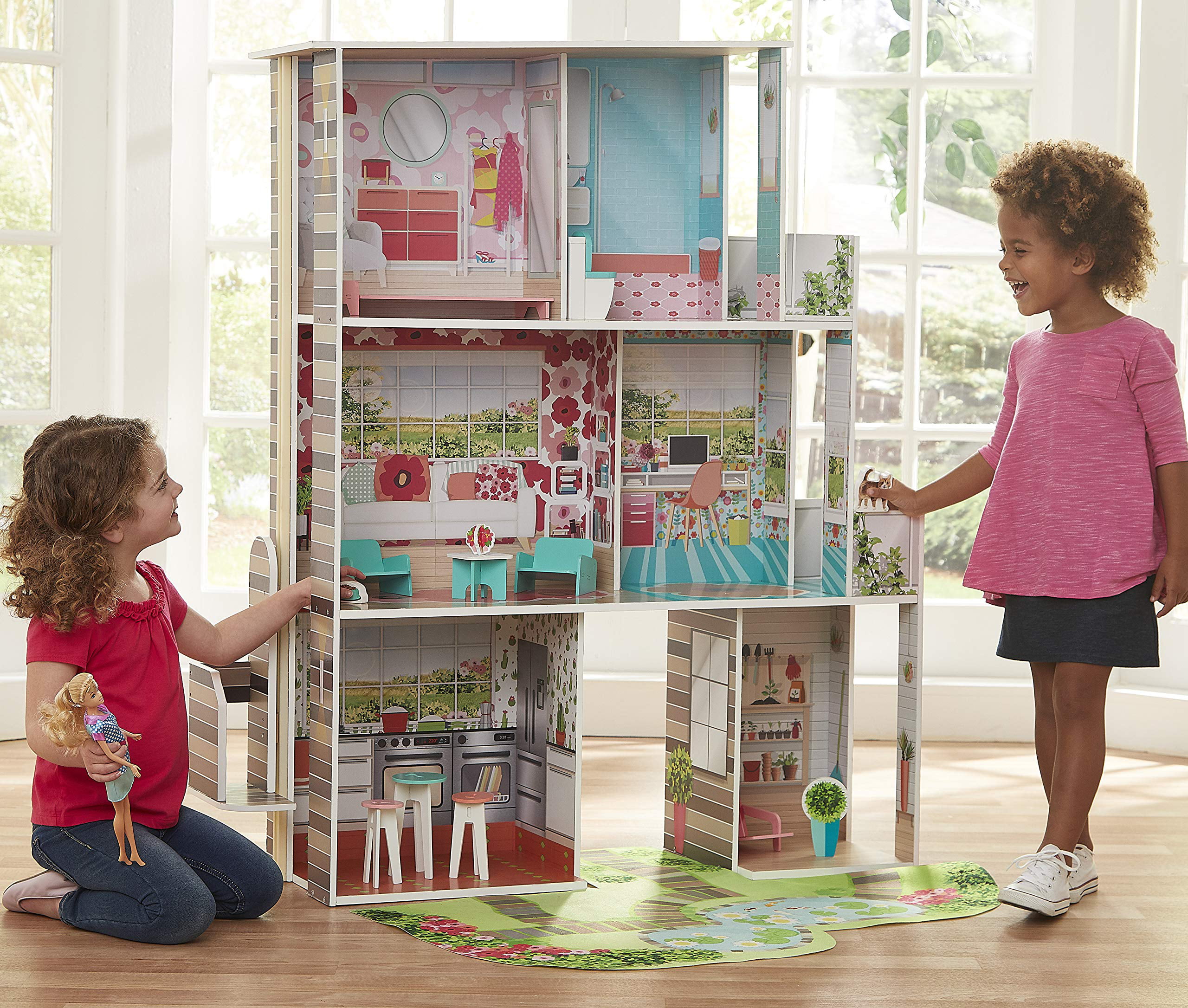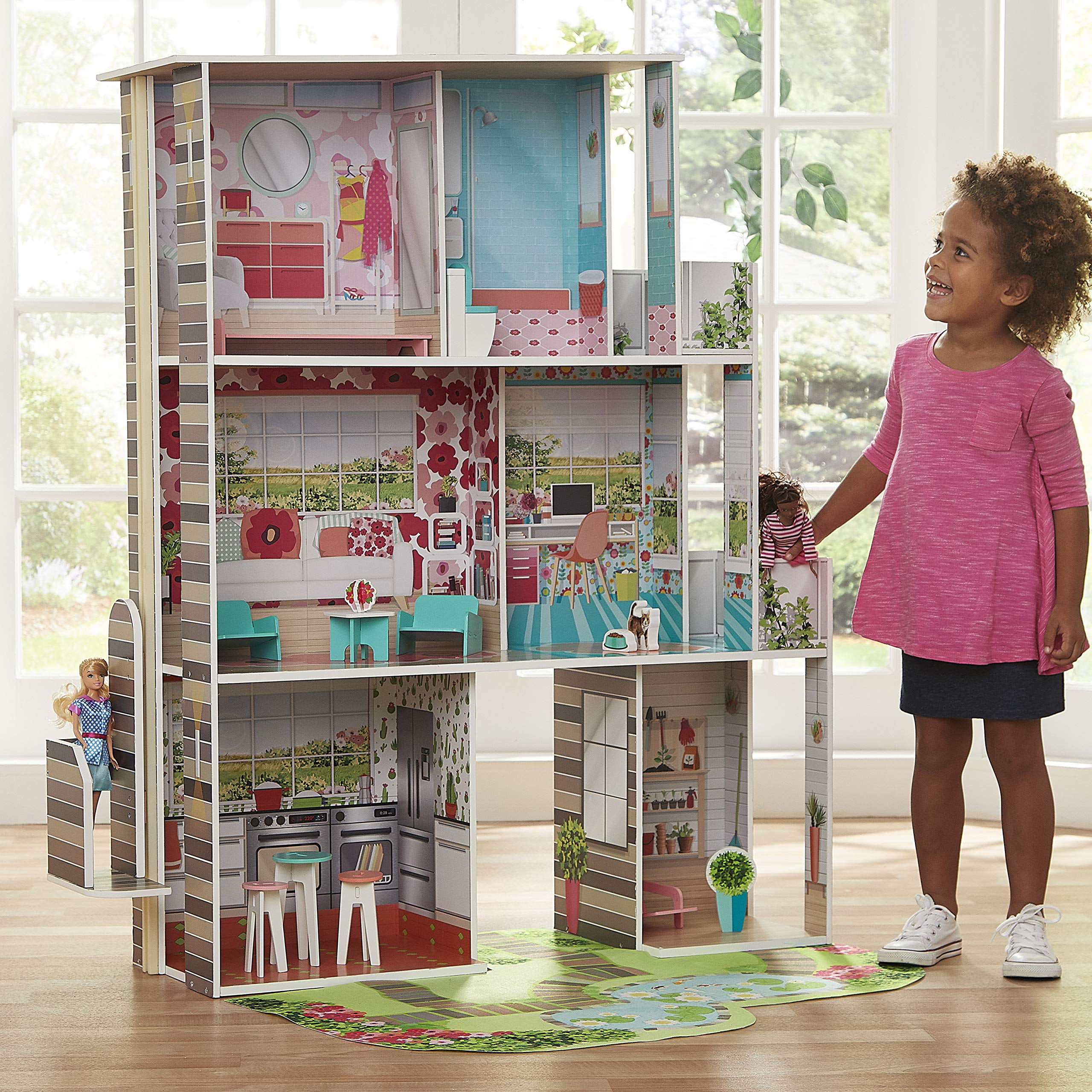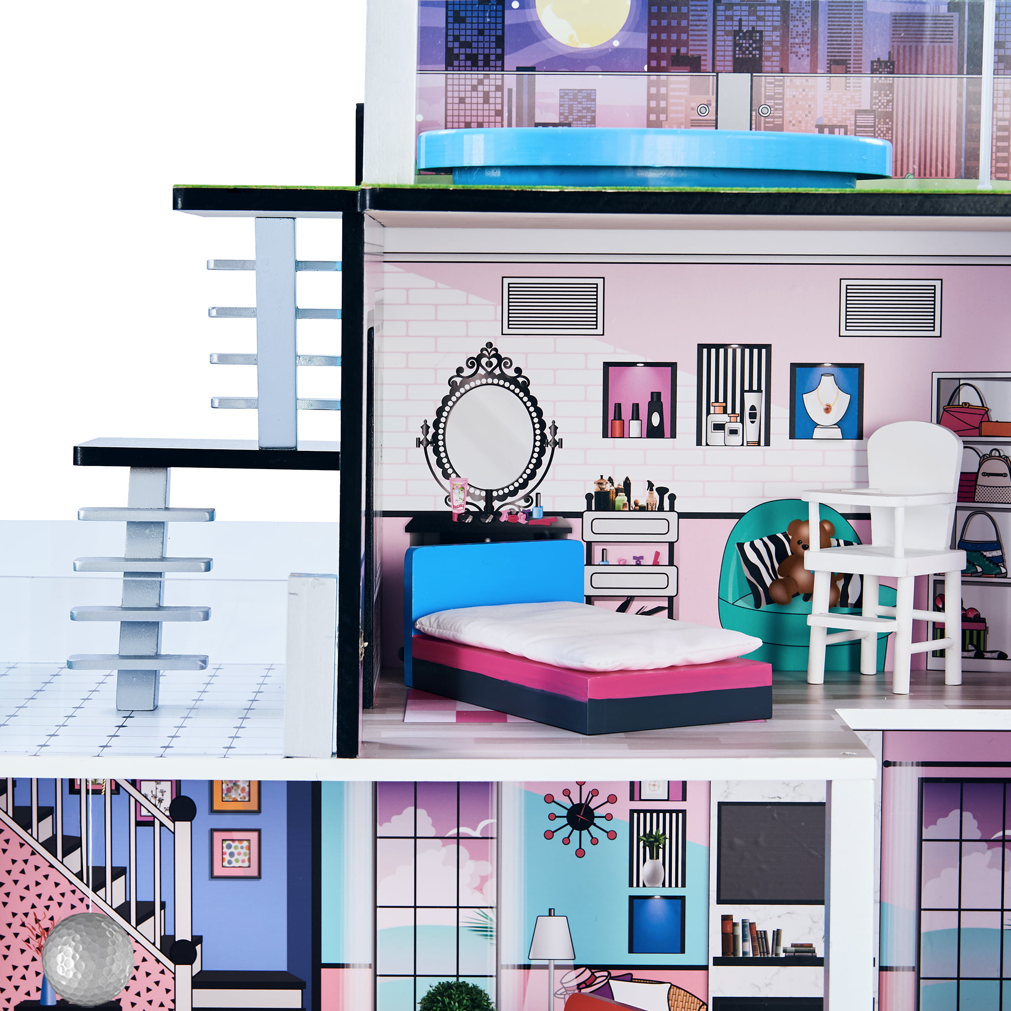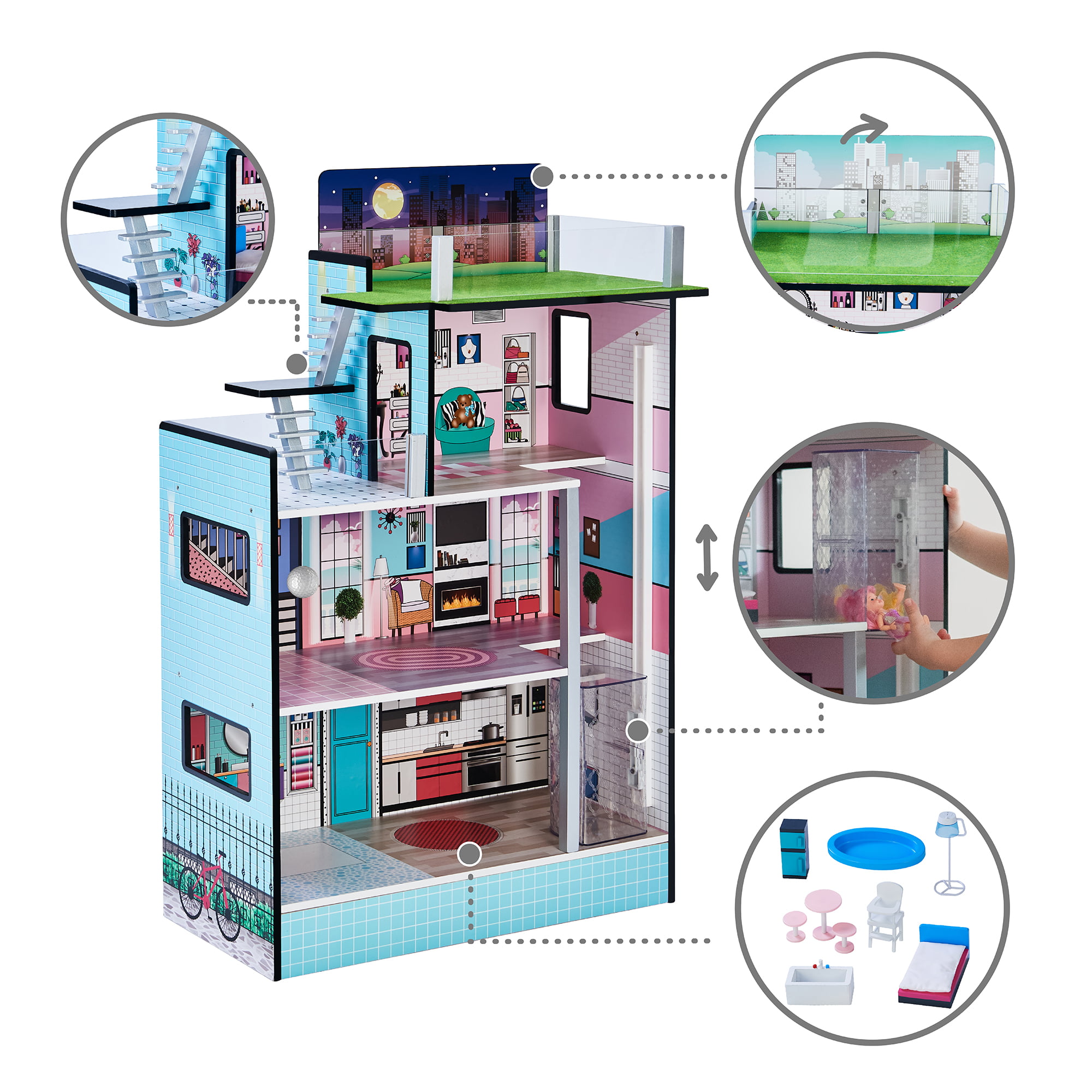 Teamson Kids Dreamland Barcelona Dollhouse with 10 Accessories. Turquoise/Black