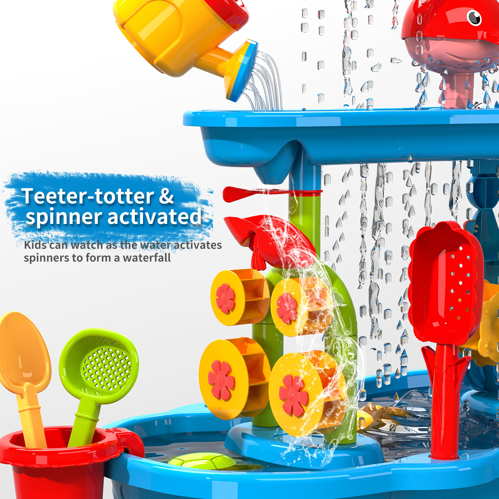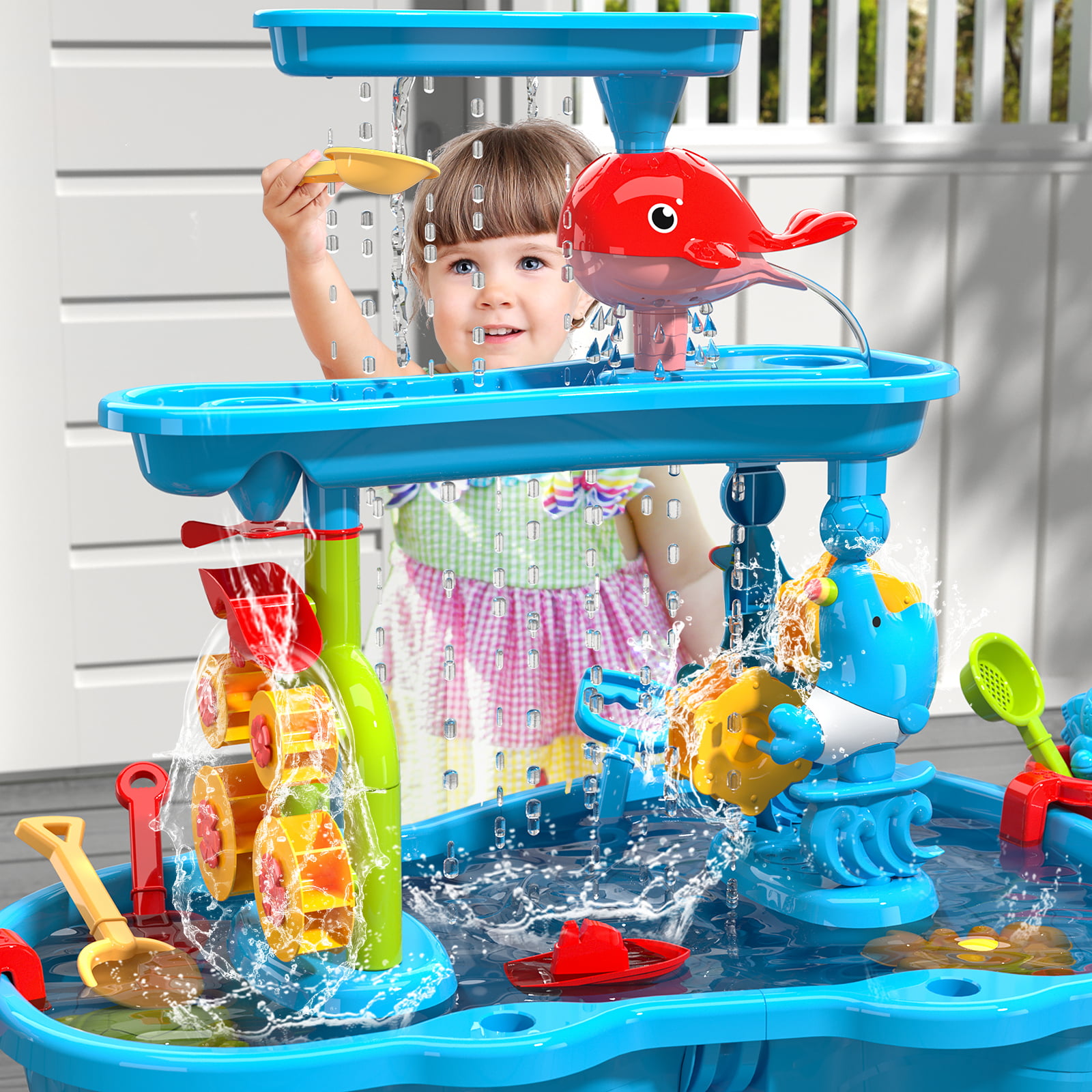 TEMI Kids Sand Water Table for Toddlers. 3-Tier Sand and Water Play Table Toys for Toddlers Kids. Activity Sensory Tables Outside Beach Toys for Toddler Boys Girls Age 1-3 3-5 Gift