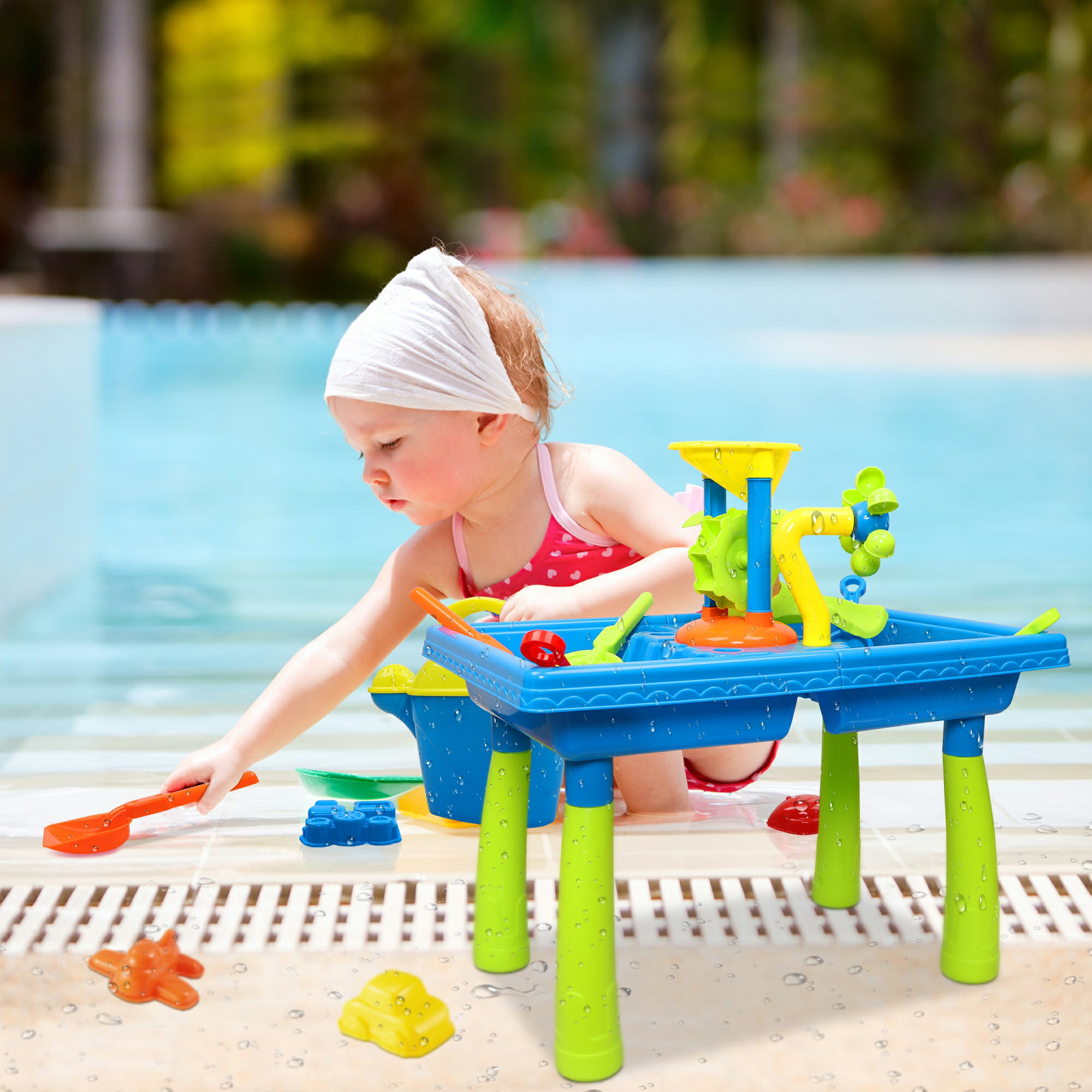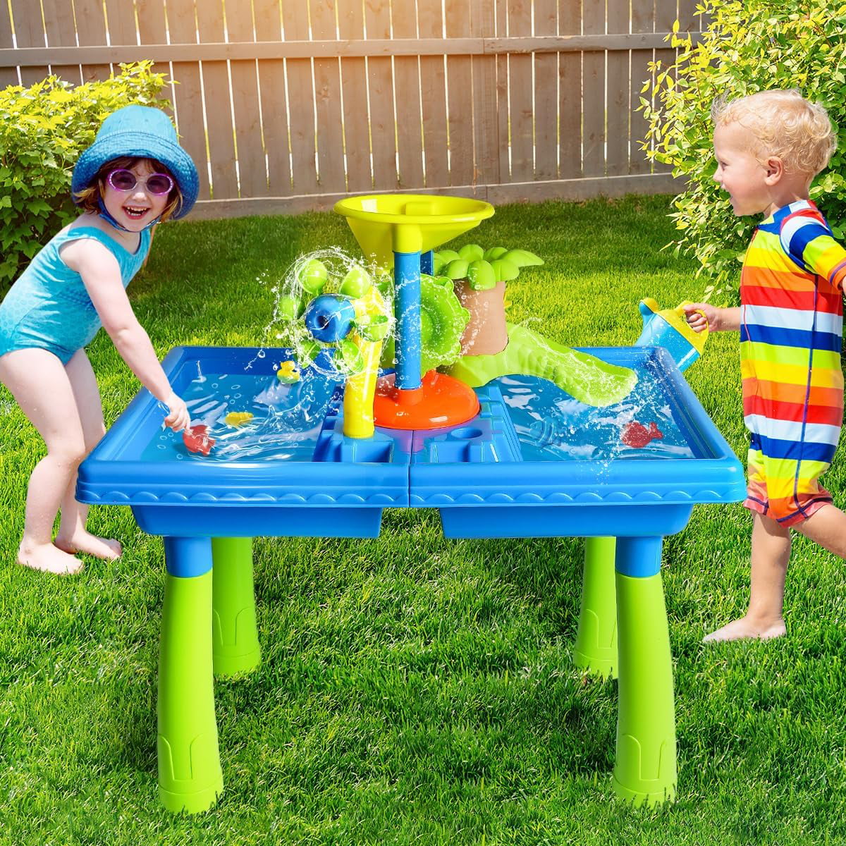 TEMI Sand Water Table for Toddlers. 4 in 1 Sand Table and Water Play Table. Kids Table Activity Sensory Play Table Beach Sand Water Toy for Outdoor Backyard for Toddlers Age 2-4 Gift