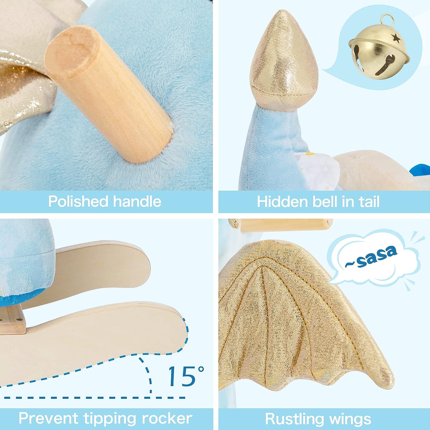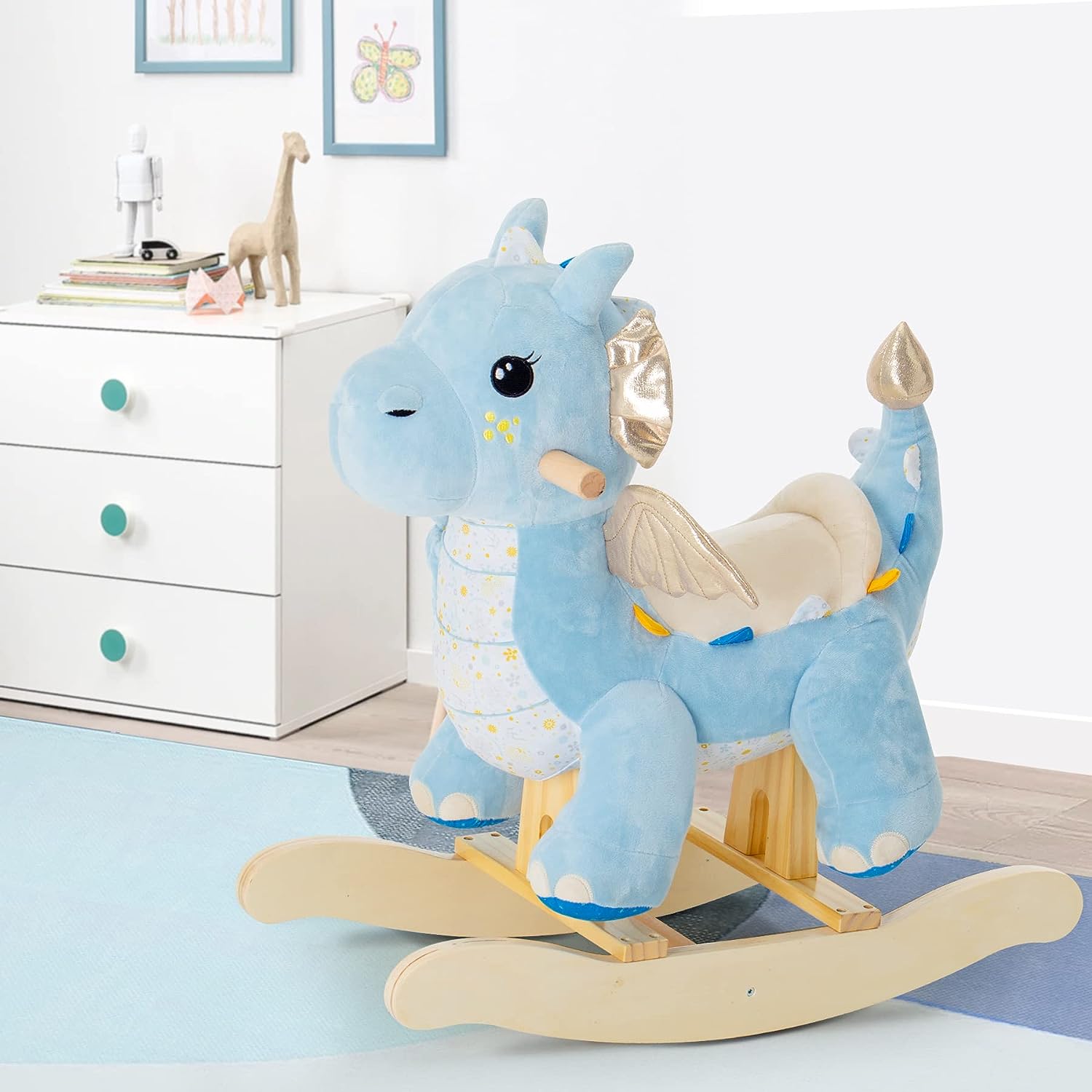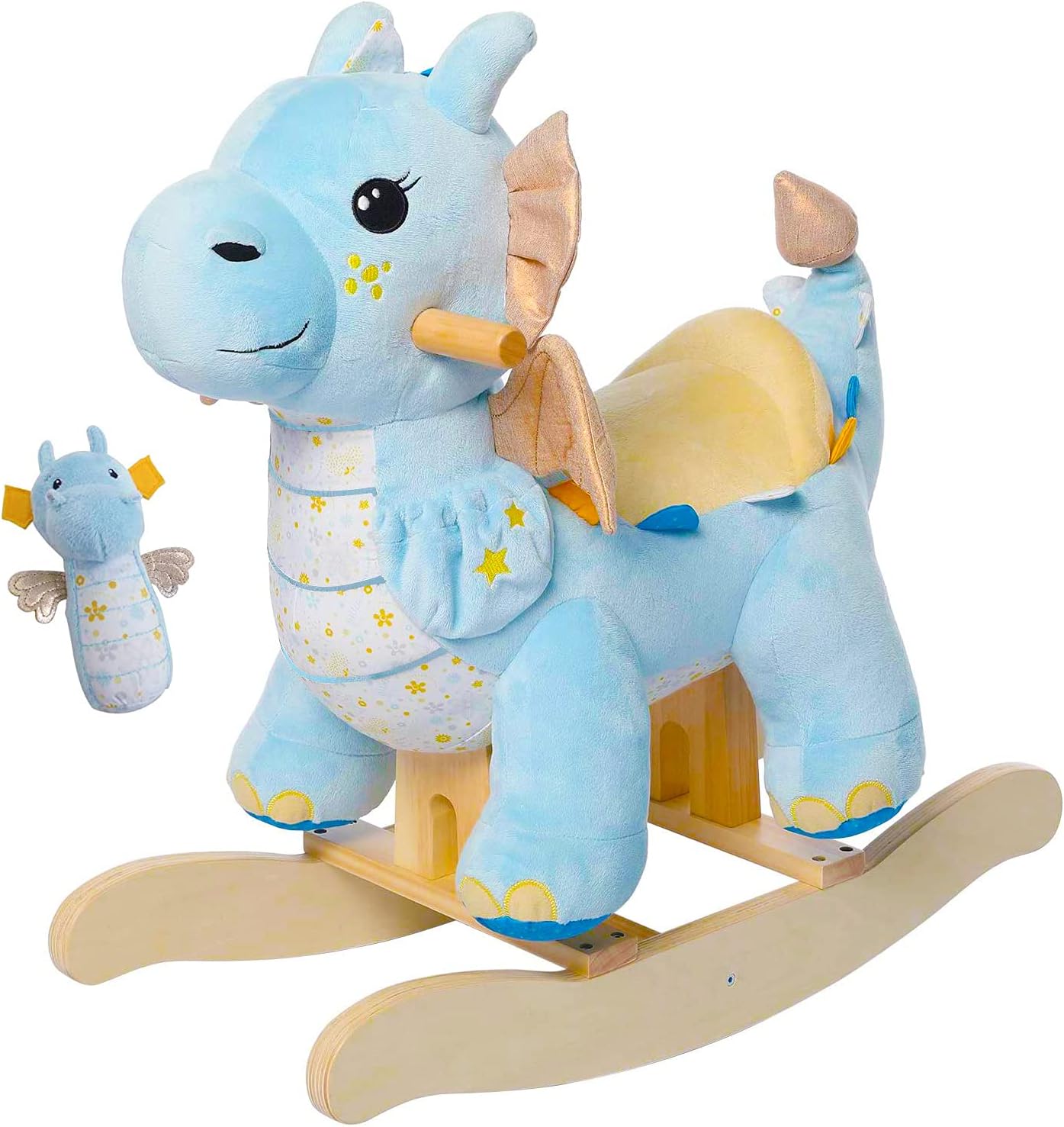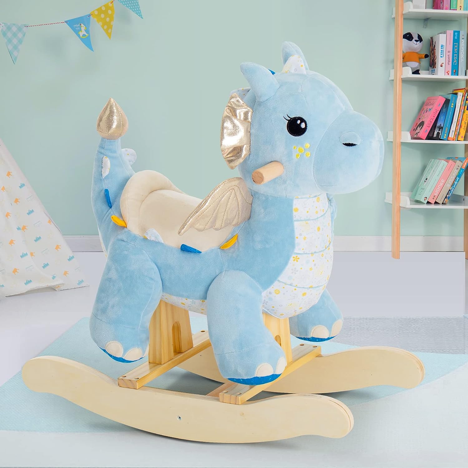 labebe Baby Rocking Horse Dragon Blue. Kids Plush Rocking Toy Stuffed Animal Rocker for 12 Months+. 1-3 Years Old Toddler Wooden Ride On Toys. Dinosaur Rocking Horse Teal Infant Girl&Boy (Blue)