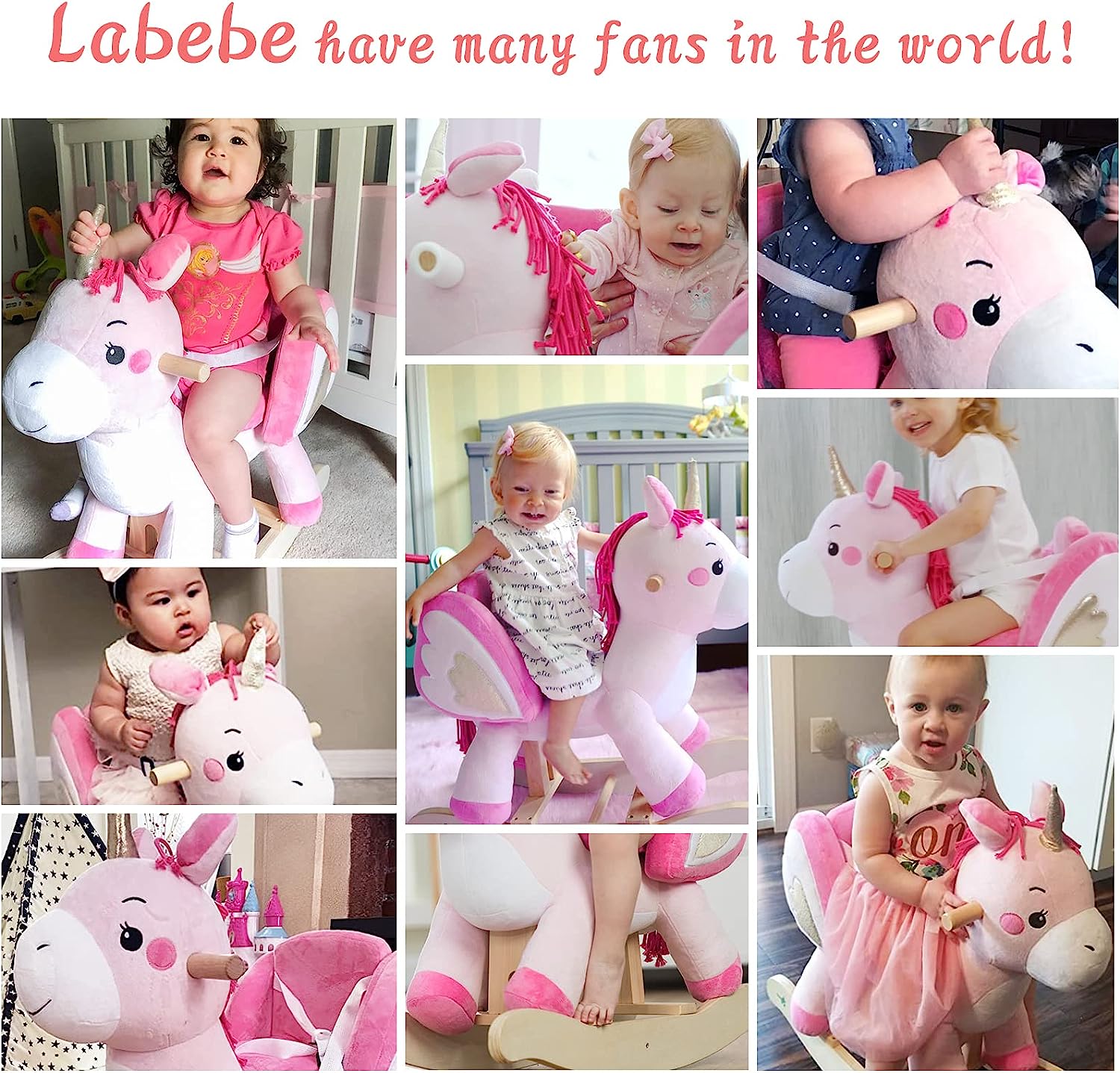 labebe - Baby Rocking Horse. Ride Unicorn. Kid Ride On Toy for 6 Month-3 Year Old. Infant (Boy Girl) Plush Animal Rocker. Toddler/Child Stuffed Ride Toy (Pink)