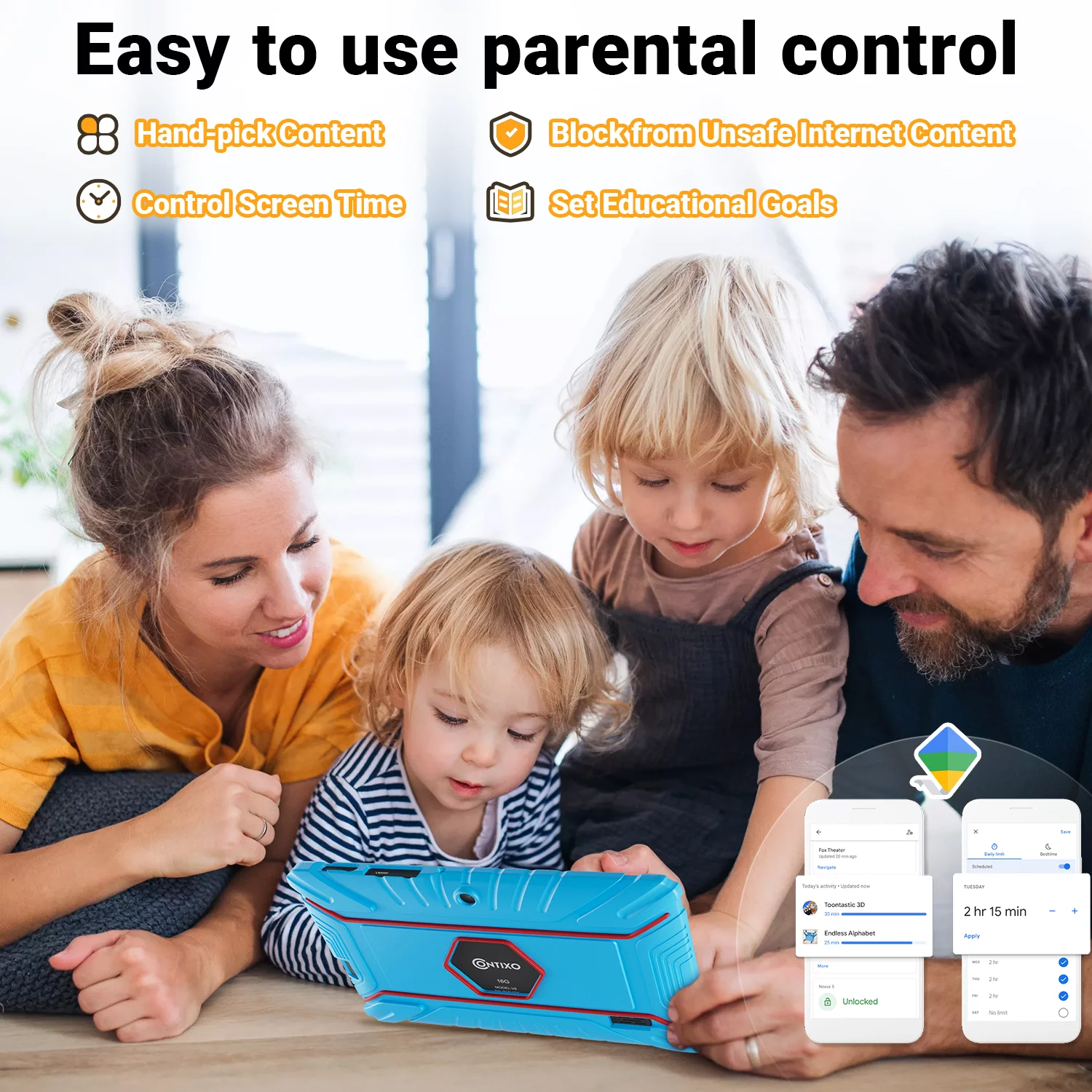 Contixo 7-Inch Android Tablet 2GB RAM 16GB WiFi Tablet for Kids. Bluetooth Parental Control Pre-Installed Learning Tablet Apps