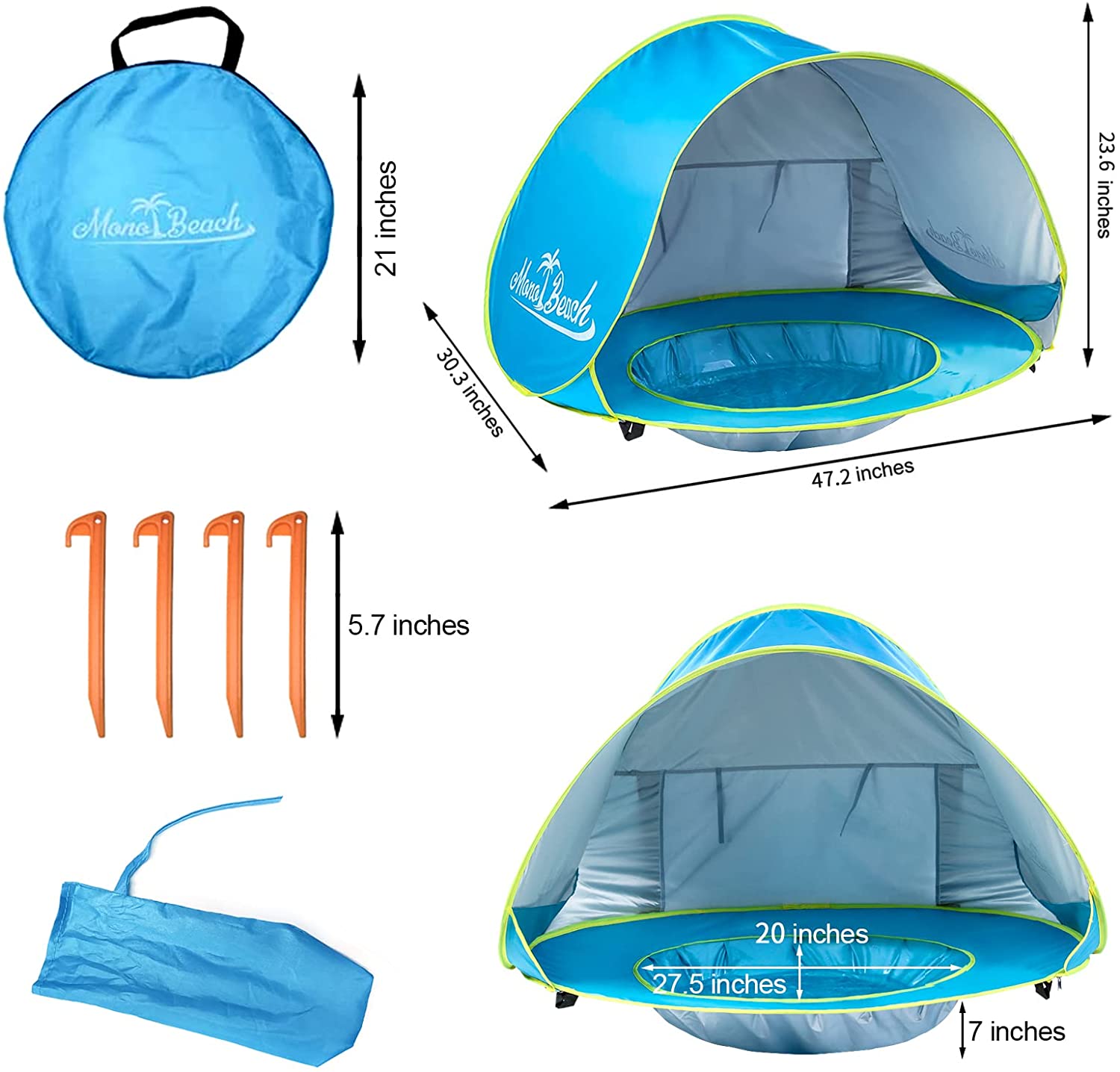 Monobeach Baby Beach Tent Pop Up Portable Shade Pool for Infant
