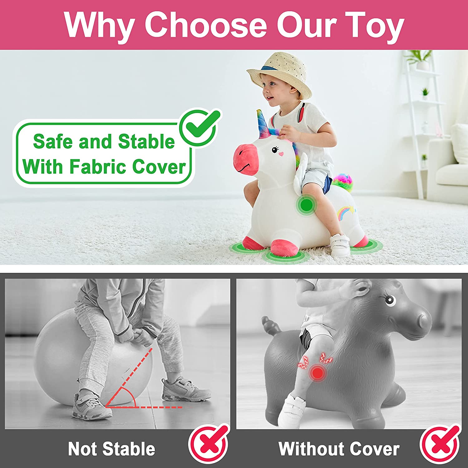 iPlay. iLearn Bouncy Pals Unicorn Hopping Horse Plush. With Pump