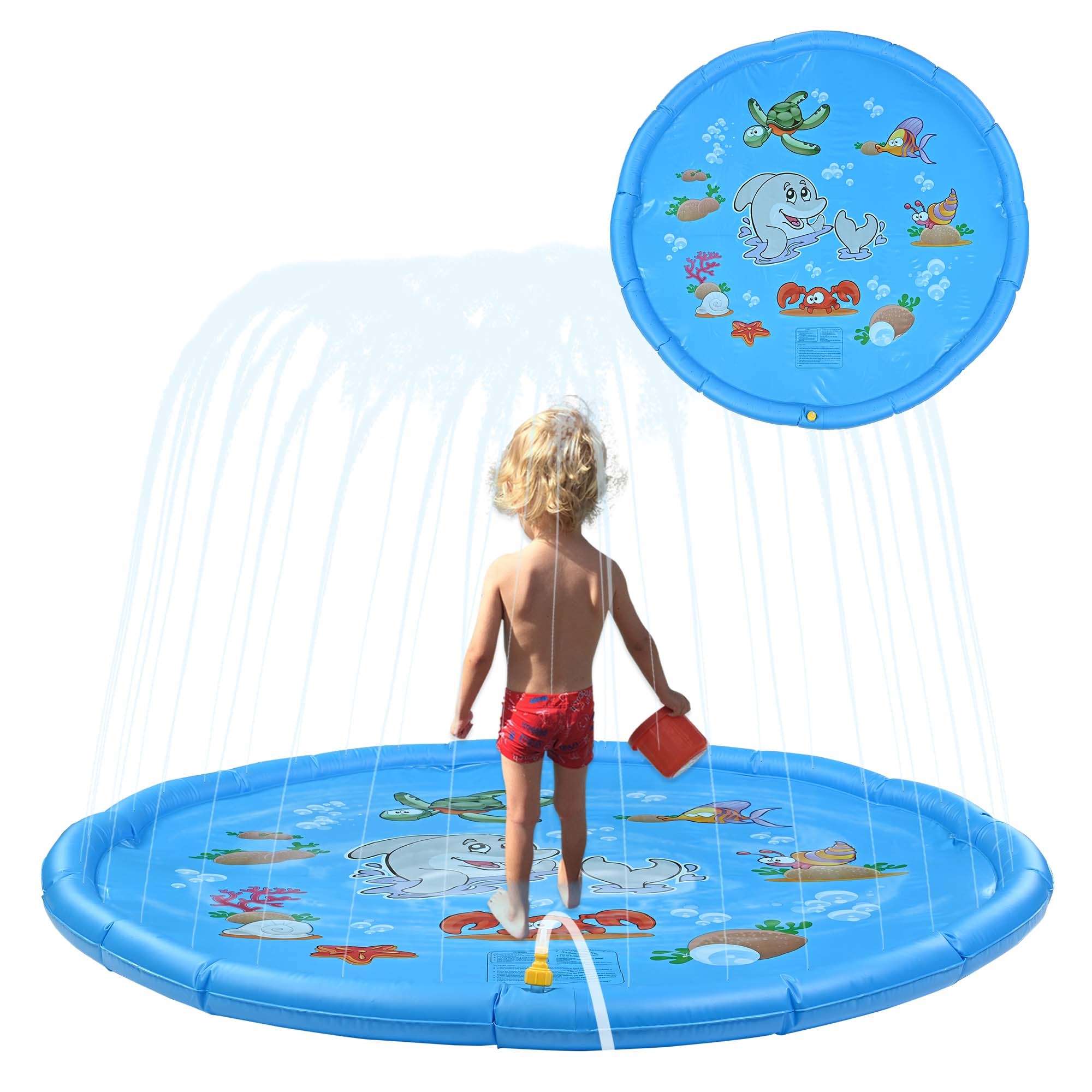 170cm Water Play Mat for Kids Inflatable Round Water Splash Play Pools Playing Sprinkler Mat Yard Water Spray Pad