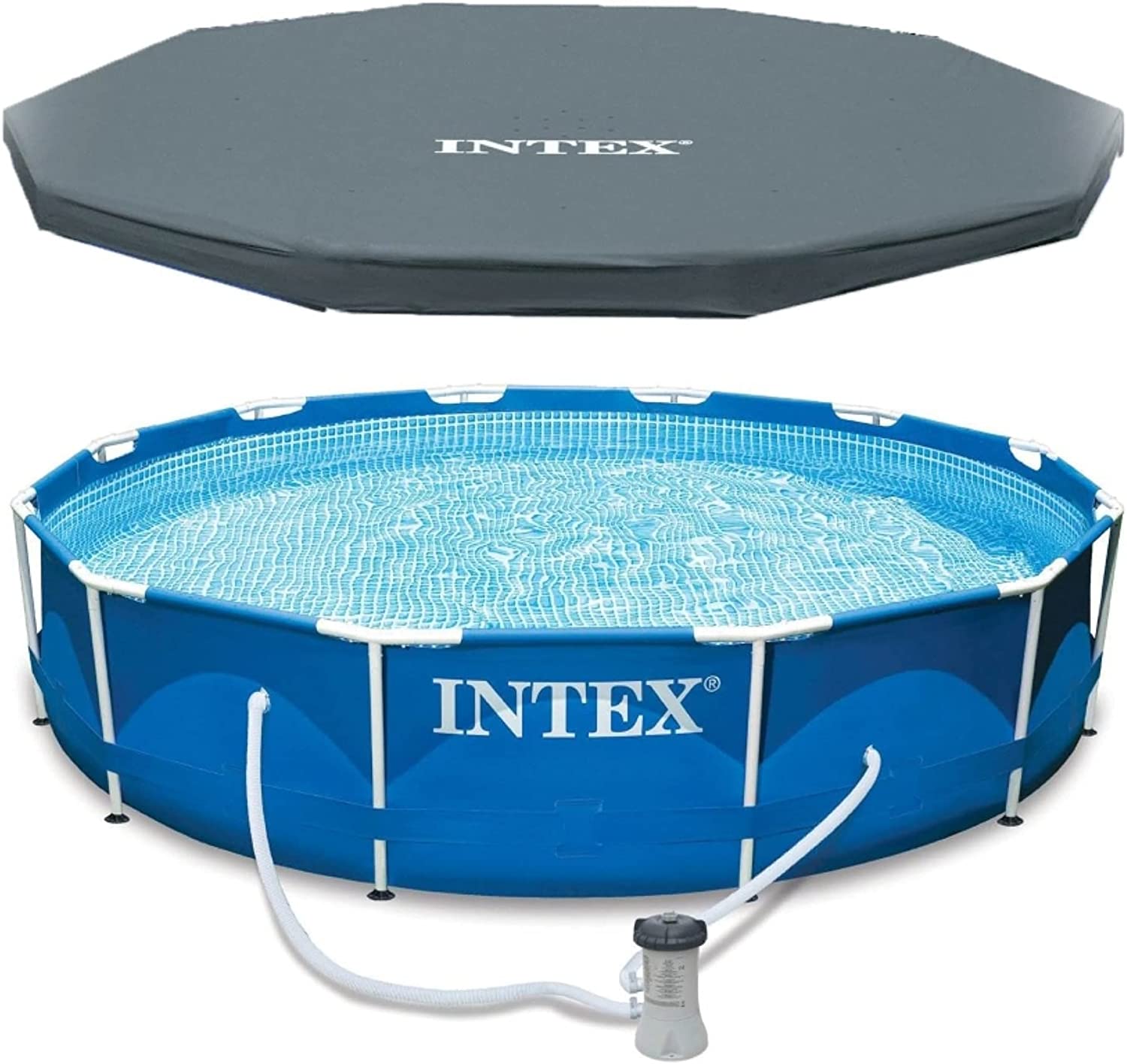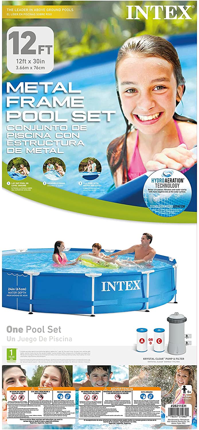 Intex 28211EH 12-Foot x 30-inch Metal Frame Round 6 Person Outdoor Above Ground Swimming Pool with GFCI Filter Pump and Pool Cover