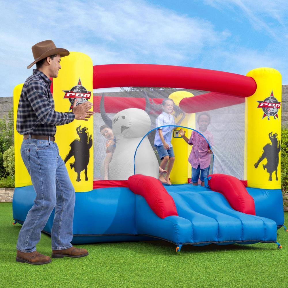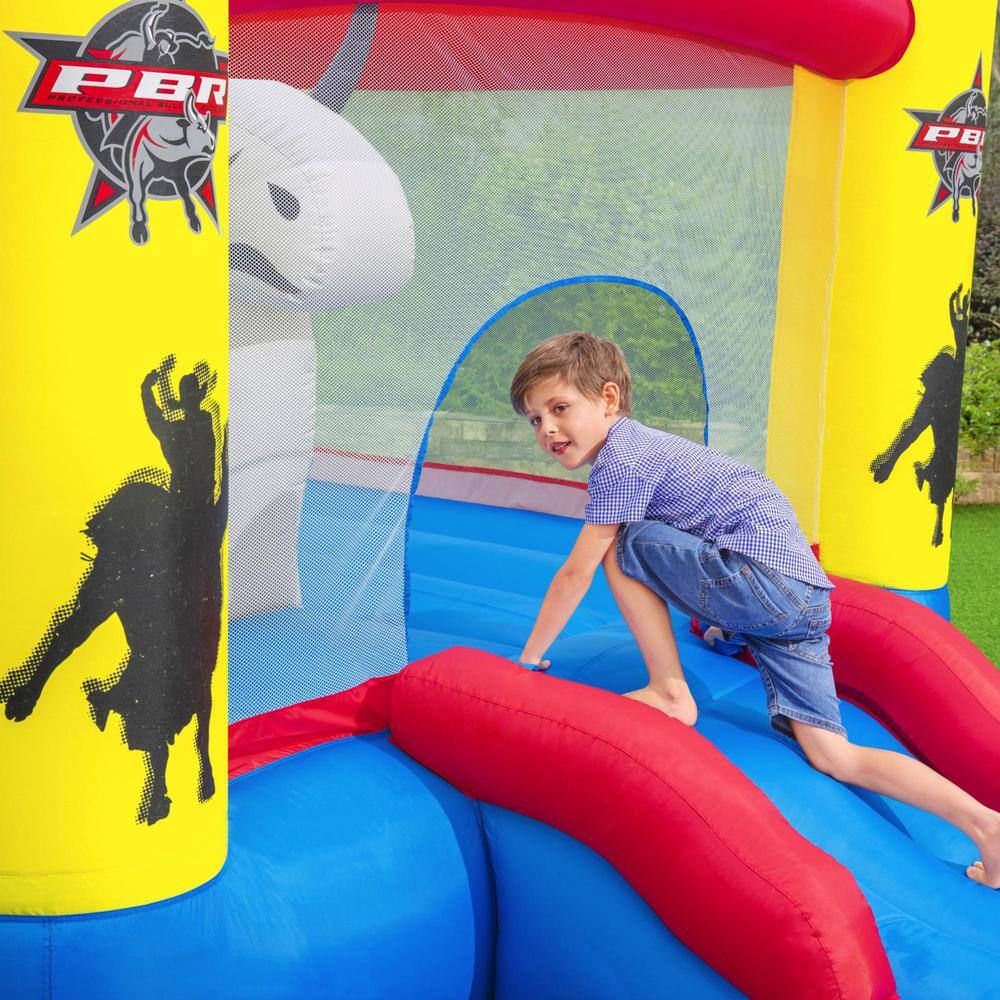 Bestway 53401E-BW Brave the Bull Multicolor PVC Indoor or Outdoor Inflatable Bounce House with Air Blower