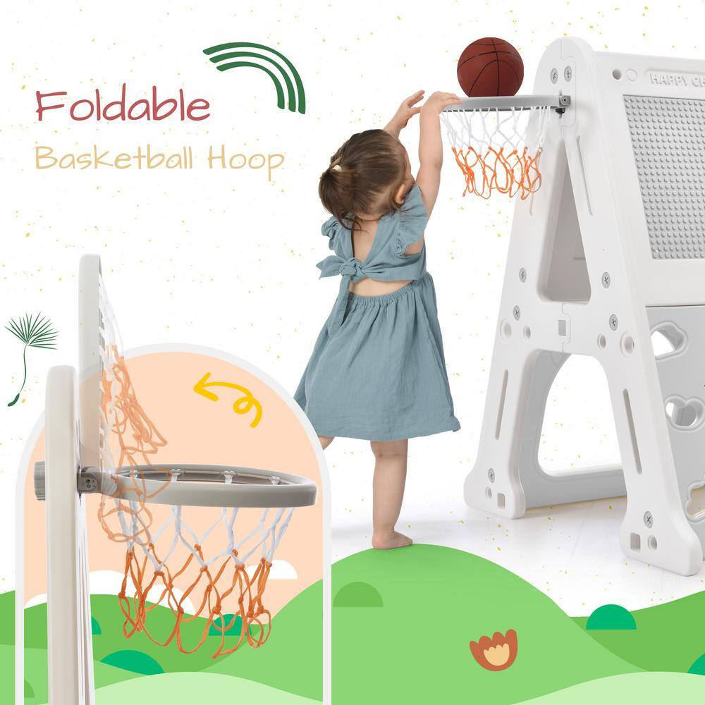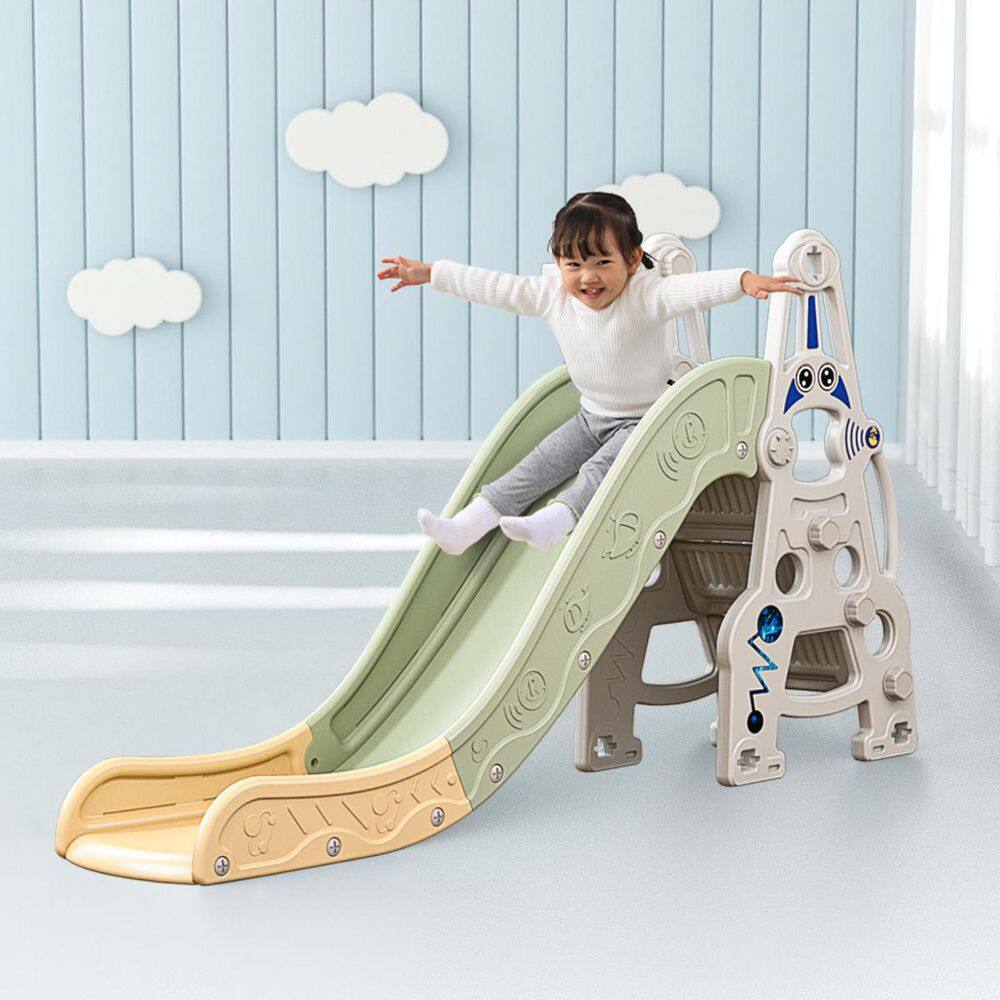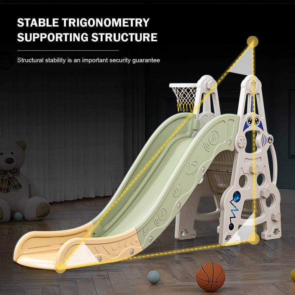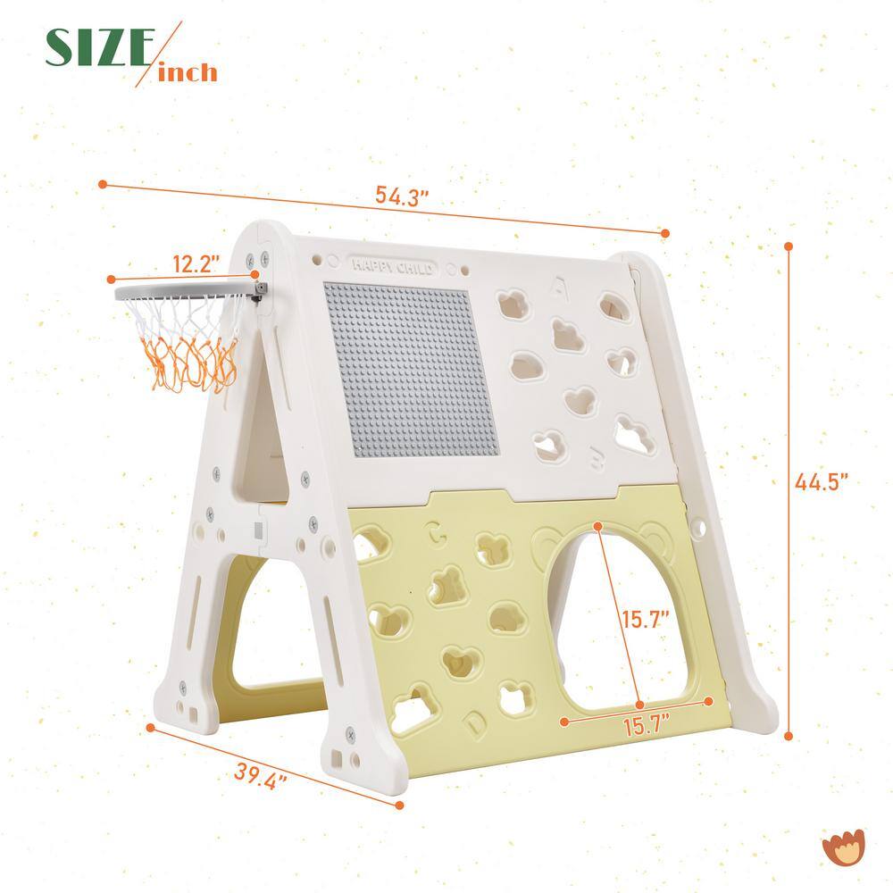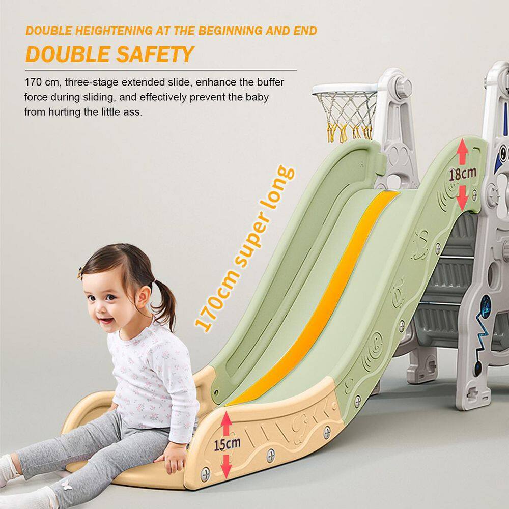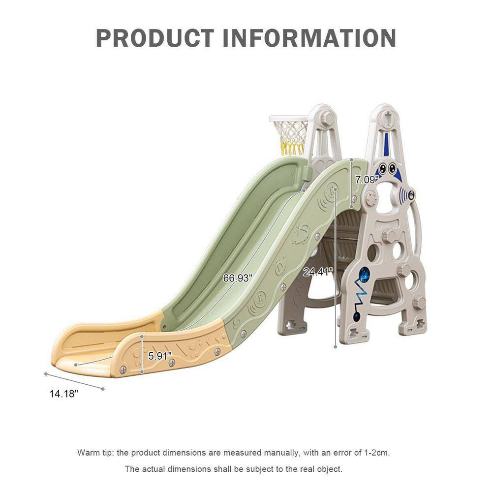 TIRAMISUBEST SYXY60698616 5.6 ft. Green Wave Slide Climber Playset with Basketball Hoop