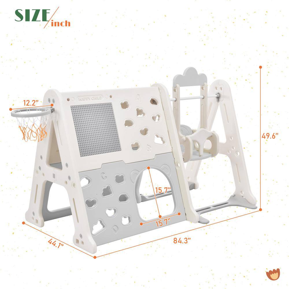 TIRAMISUBEST PPXY300100AAE Gray 6-in-1 Toddler Freestanding Climber Playset with Swing