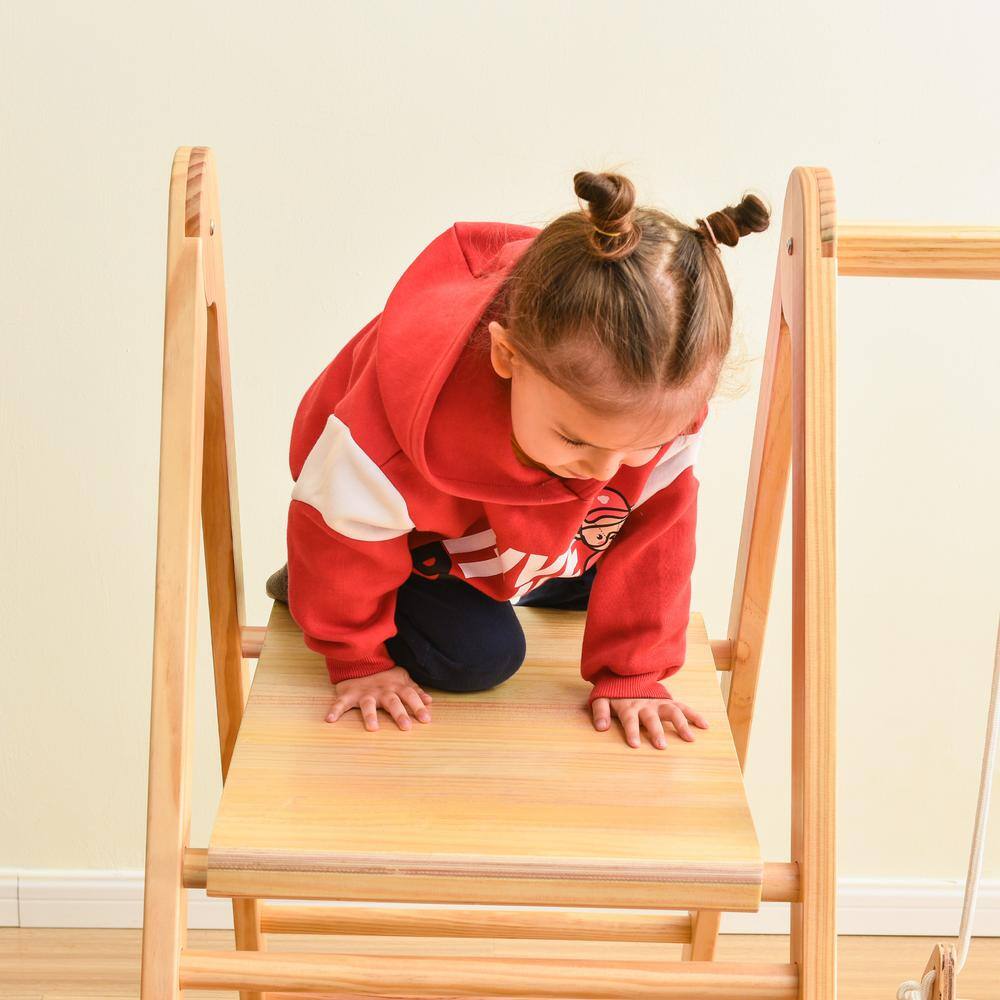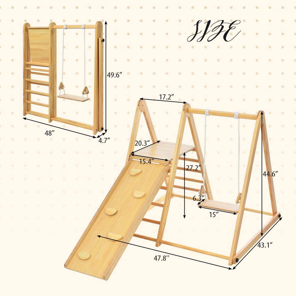 LN20232279 Wood Indoor Swing Set with Rock Climb Ramp for Toddlers