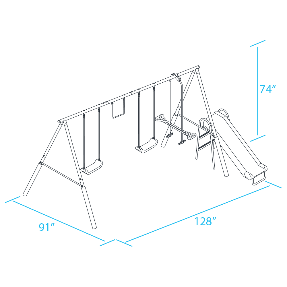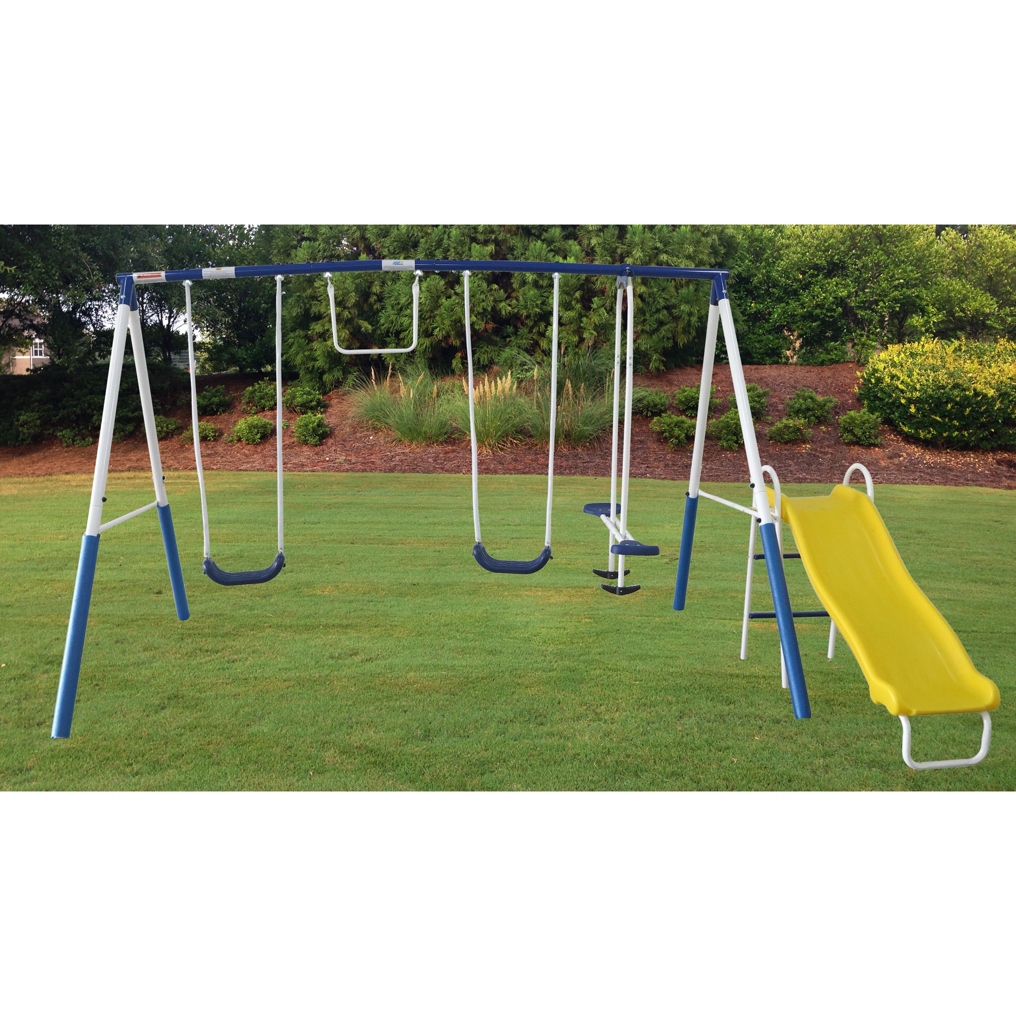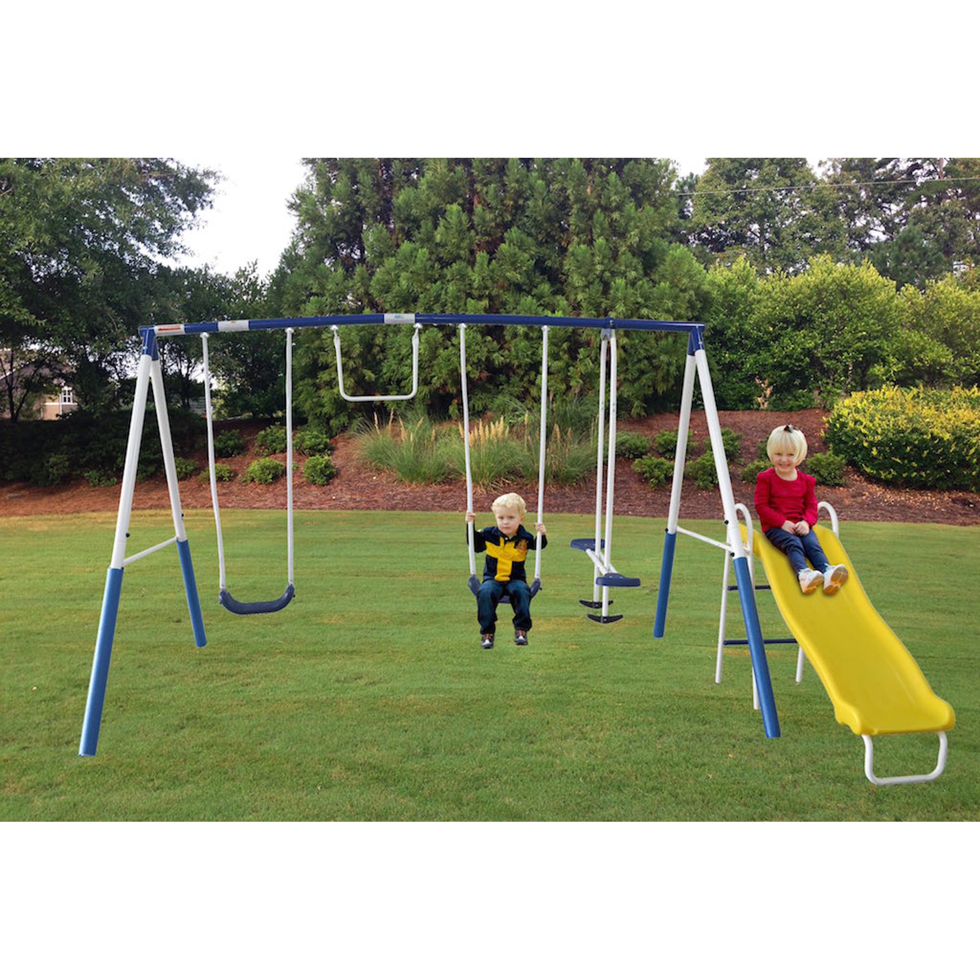 XDP Recreation Play All Day Metal A-Frame Swing Set with Fun Glider. Swings. Trapeze. and Slide