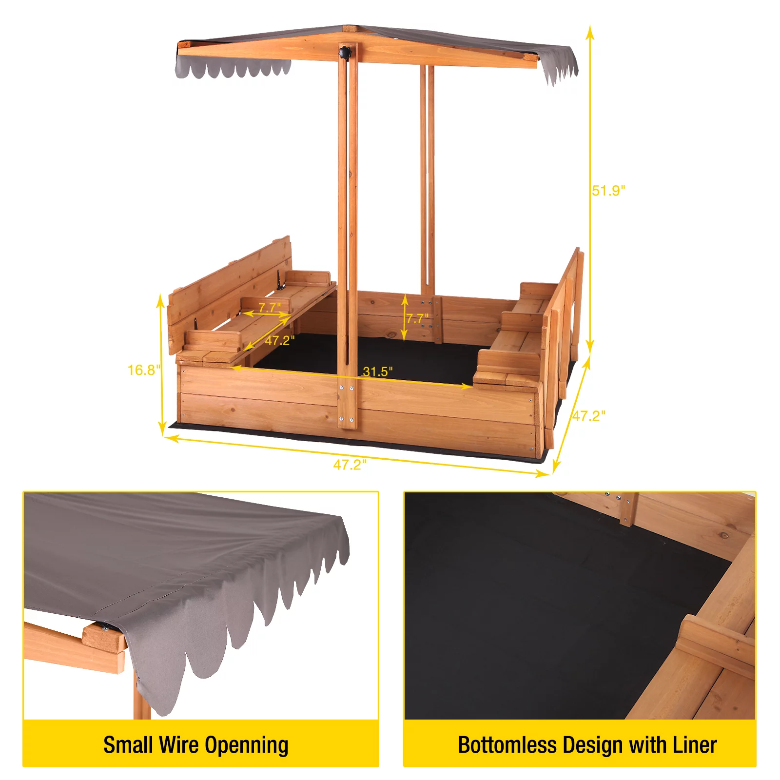 Morgete 47” Outdoor Sandbox for Kids with Lid and Bench. Wooden Sand Play Toys Center with Adjustable Canopy