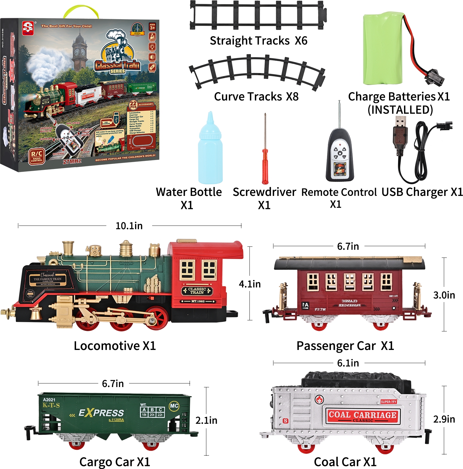 FANL Train Set Toy. RC Train Set W/ Smoke. Lights. Sounds Railway . Rechargeable Electric Train Toy Birthday Gift Toys for Age 3 4 5 6 + Kids