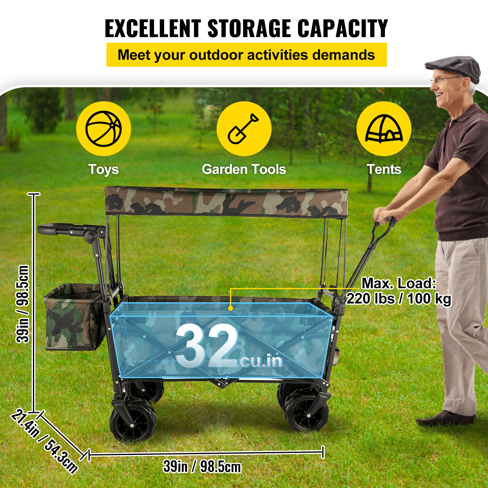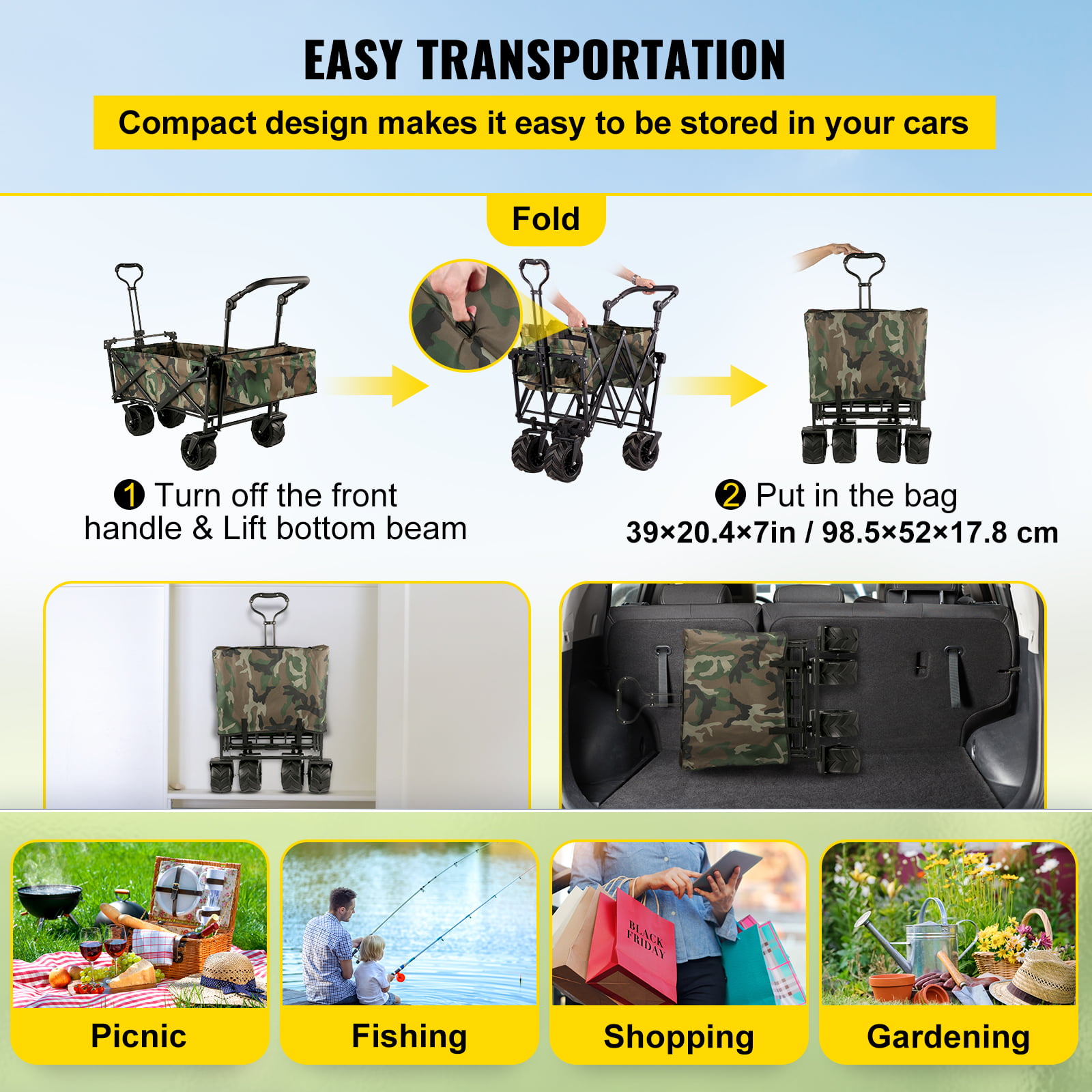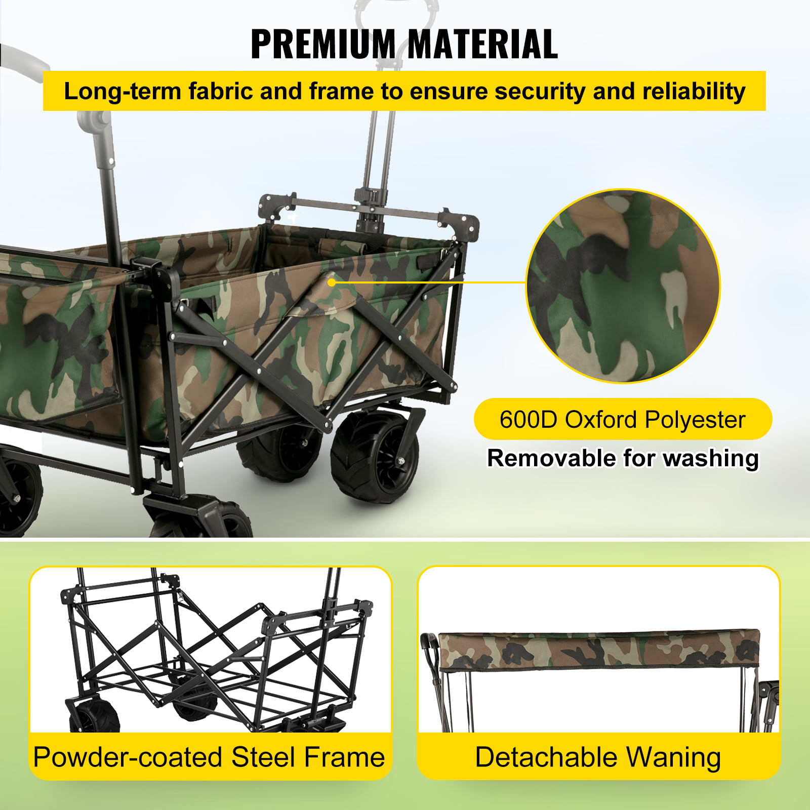 VEVORbrand Collapsible Wagon Cart Camouflage. Foldable Wagon Cart Removable Canopy 603D Oxford Cloth. Collapsible Wagon Oversized Wheels. Portable Folding Wagon Adjustable Handles. Beach. Garden