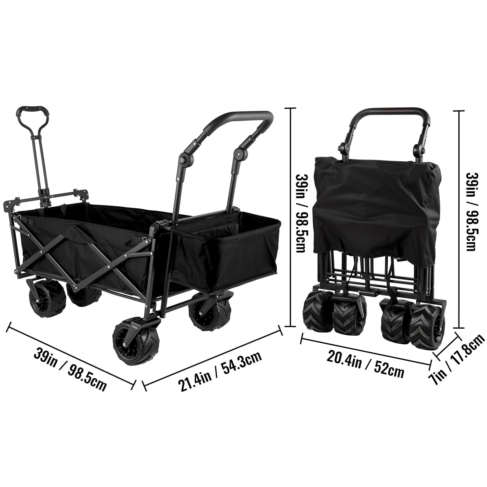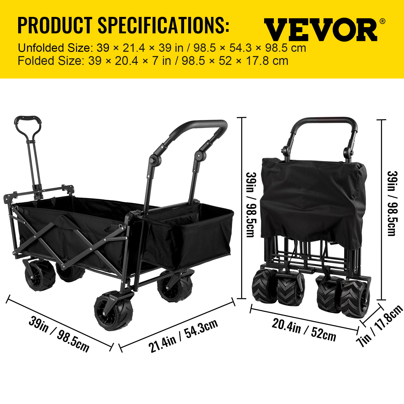 VEVORbrand Collapsible Wagon Cart Black. Foldable Wagon Cart Removable Canopy 602D Oxford Cloth. Collapsible Wagon Oversized Wheels. Portable Folding Wagon Adjustable Handles. Beach. Garden. Sports