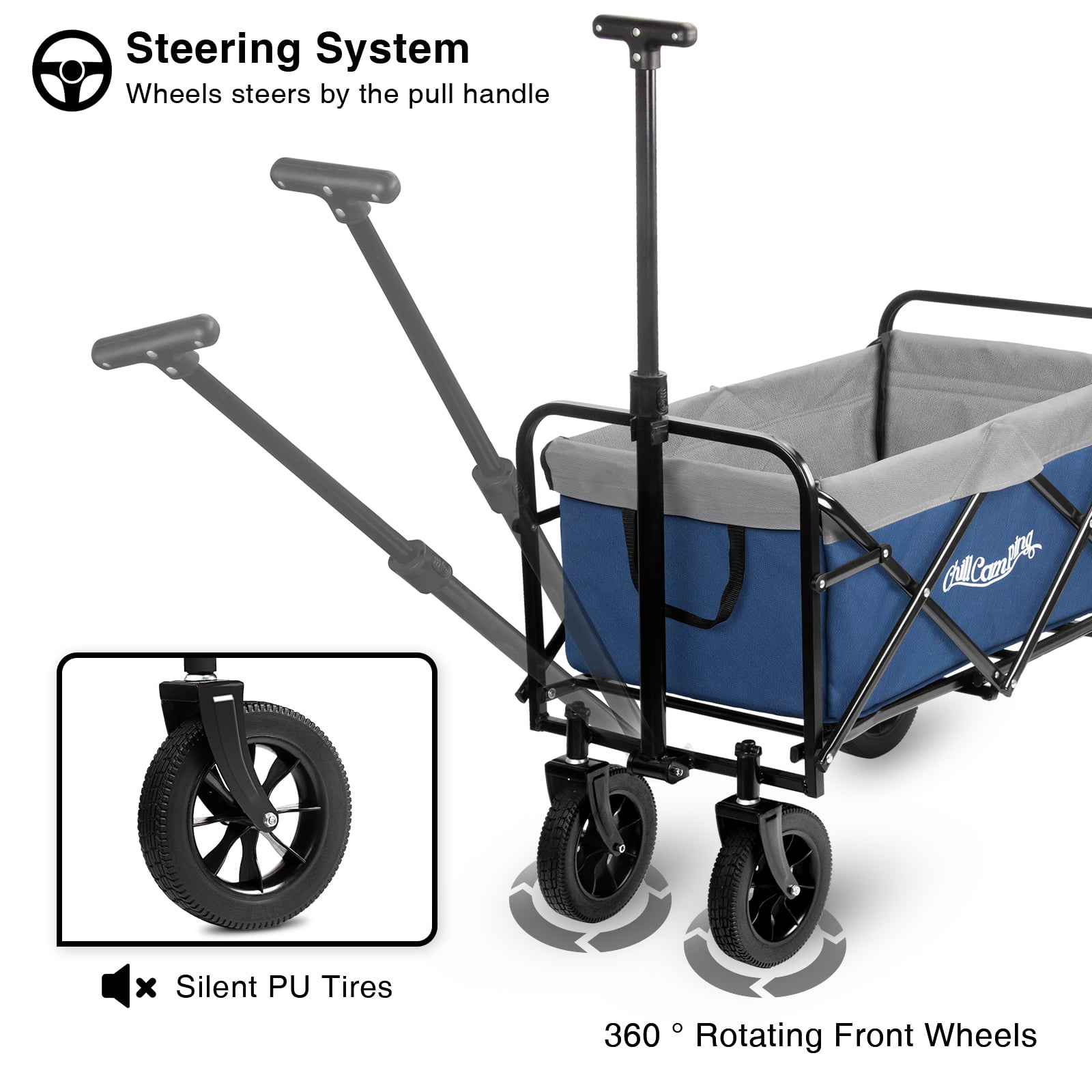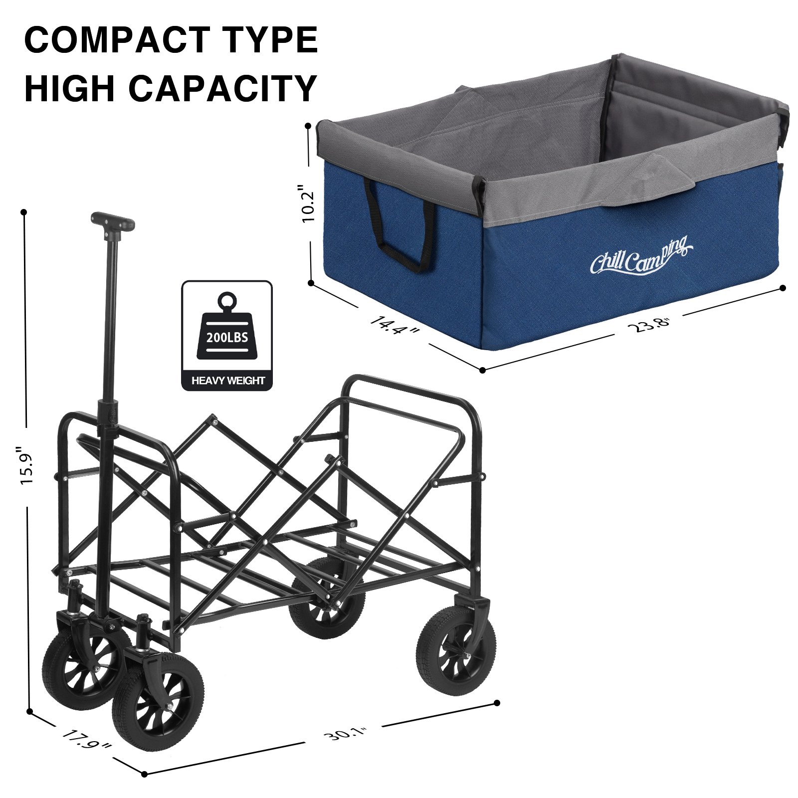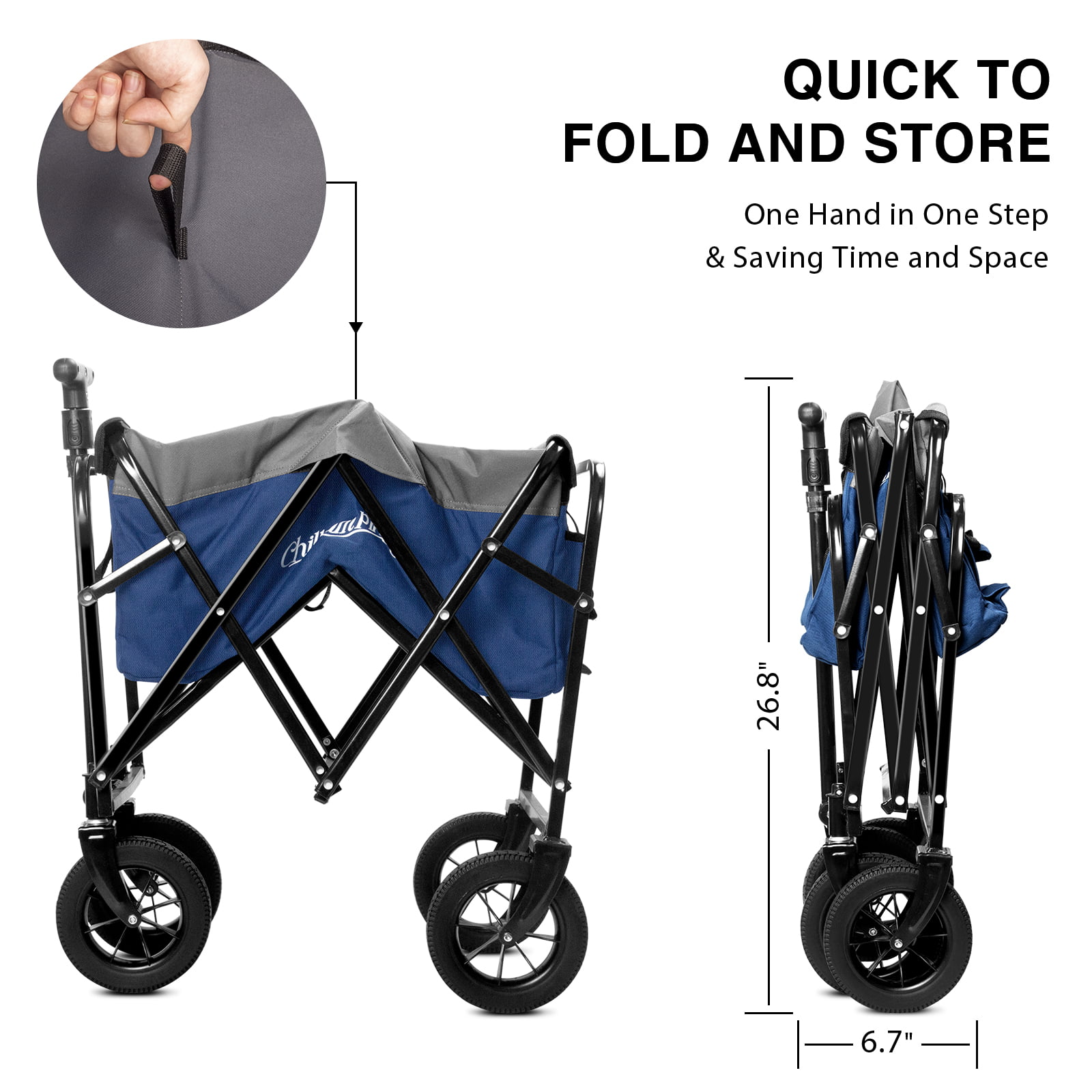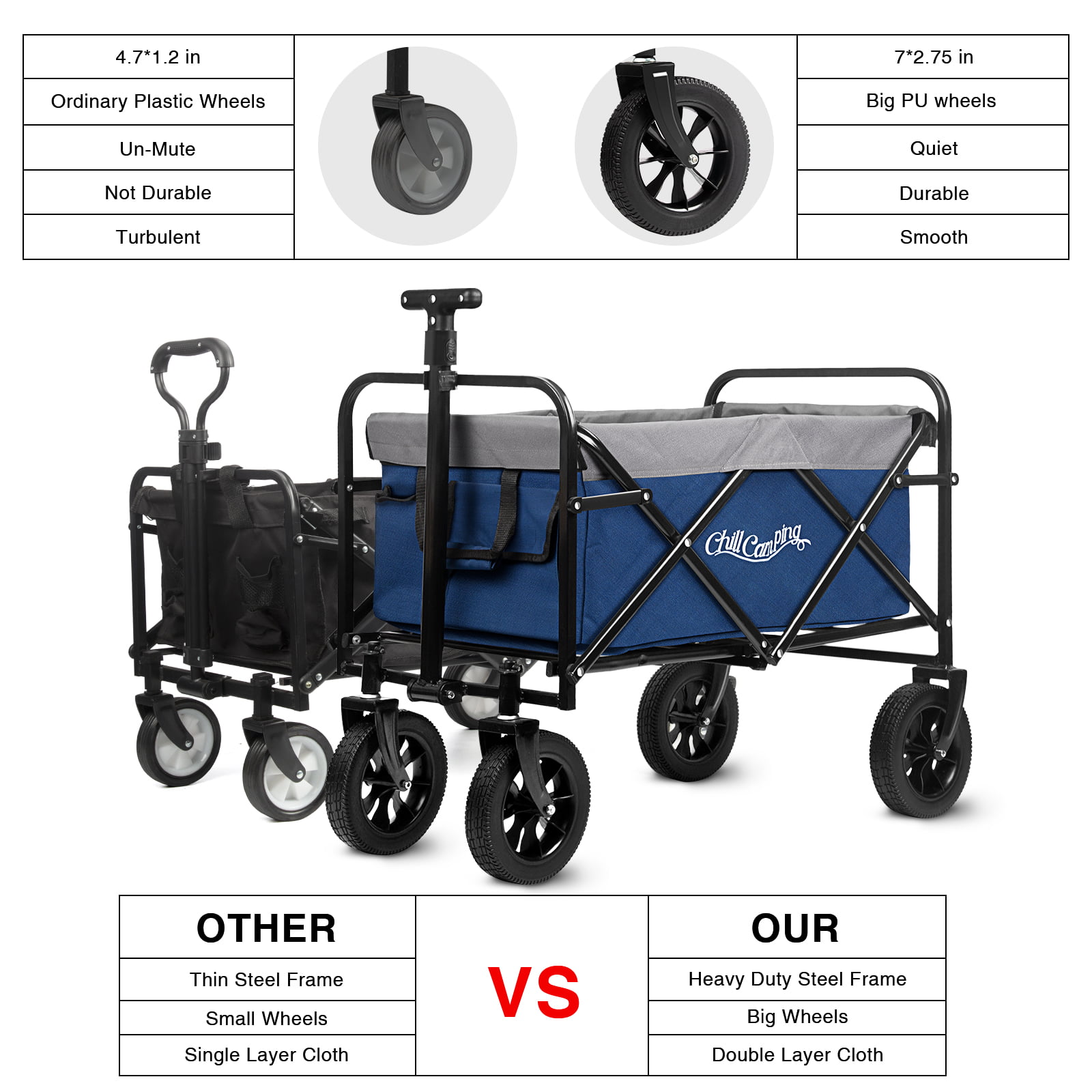 Collapsible Wagon Foldable Cart with All Terrain Big Wheels. Utility Wagon for Garden Outdoor Camping Picnic Beach Sports. Grocery Shopping Cart. Blue