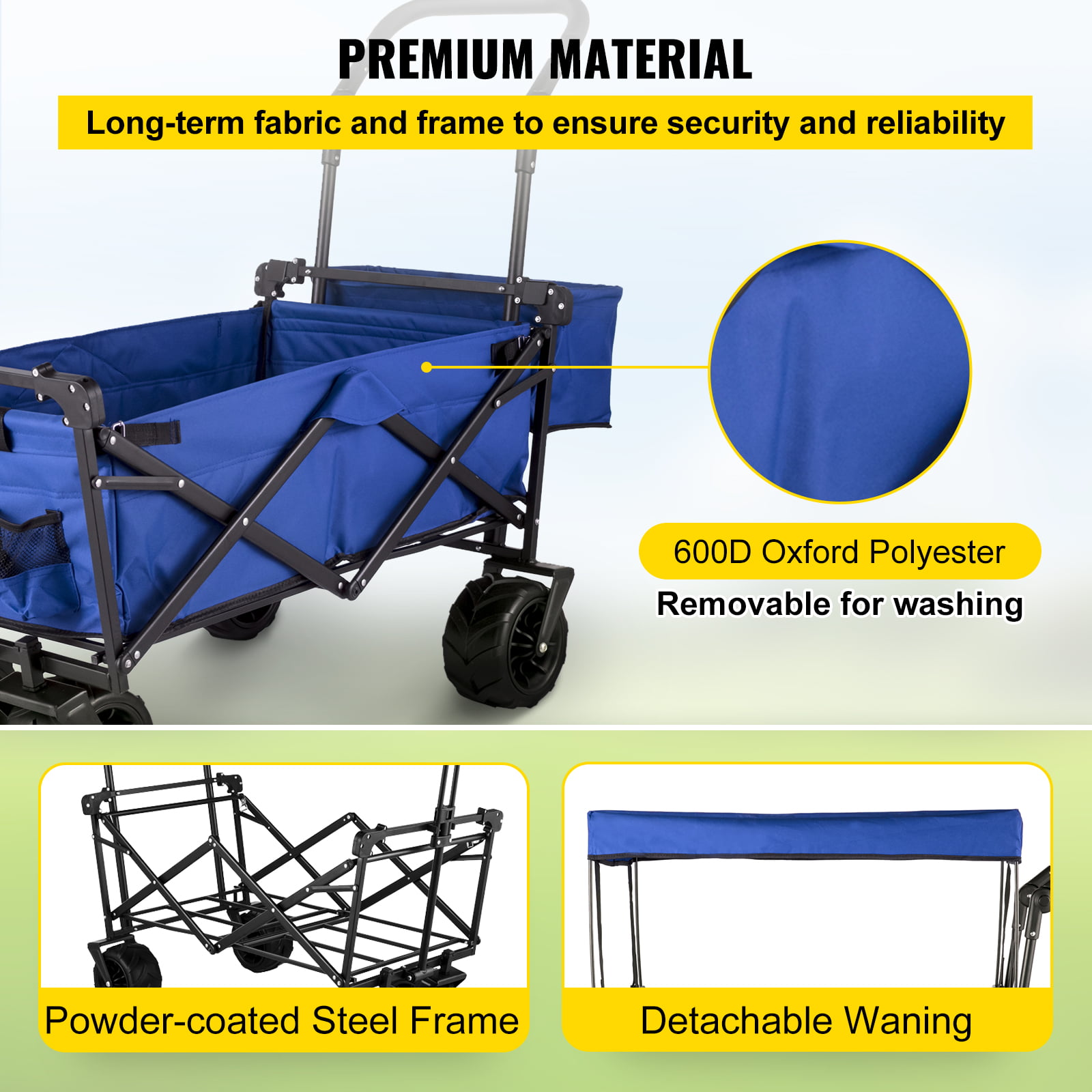 VEVOR Collapsible Wagon Cart Blue. Foldable Wagon Cart Removable Canopy 600D Oxford Cloth. Collapsible Wagon Oversized Wheels. Portable Folding Wagon Adjustable Handles. Beach. Garden. Sports