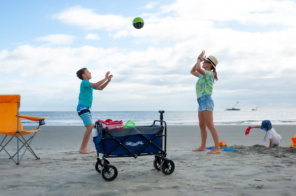 Mainstays Folding All-Terrain Wide-Track Wheeled Beach Wagon. Blue