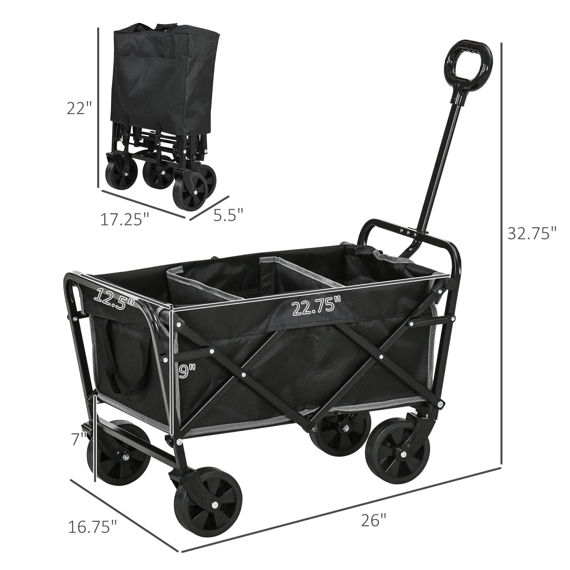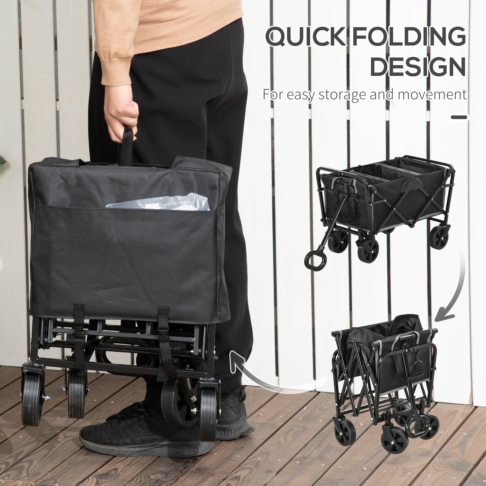 Outsunny Collapsible Folding Wagon Cart. Garden Wagon Portable Cart Black