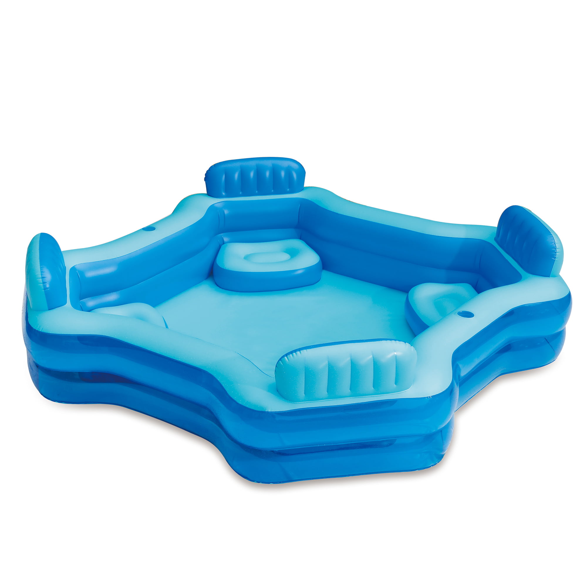 Square Inflatable Deluxe Comfort Family Pool. Blue. Ages 6 and Up. Unisex