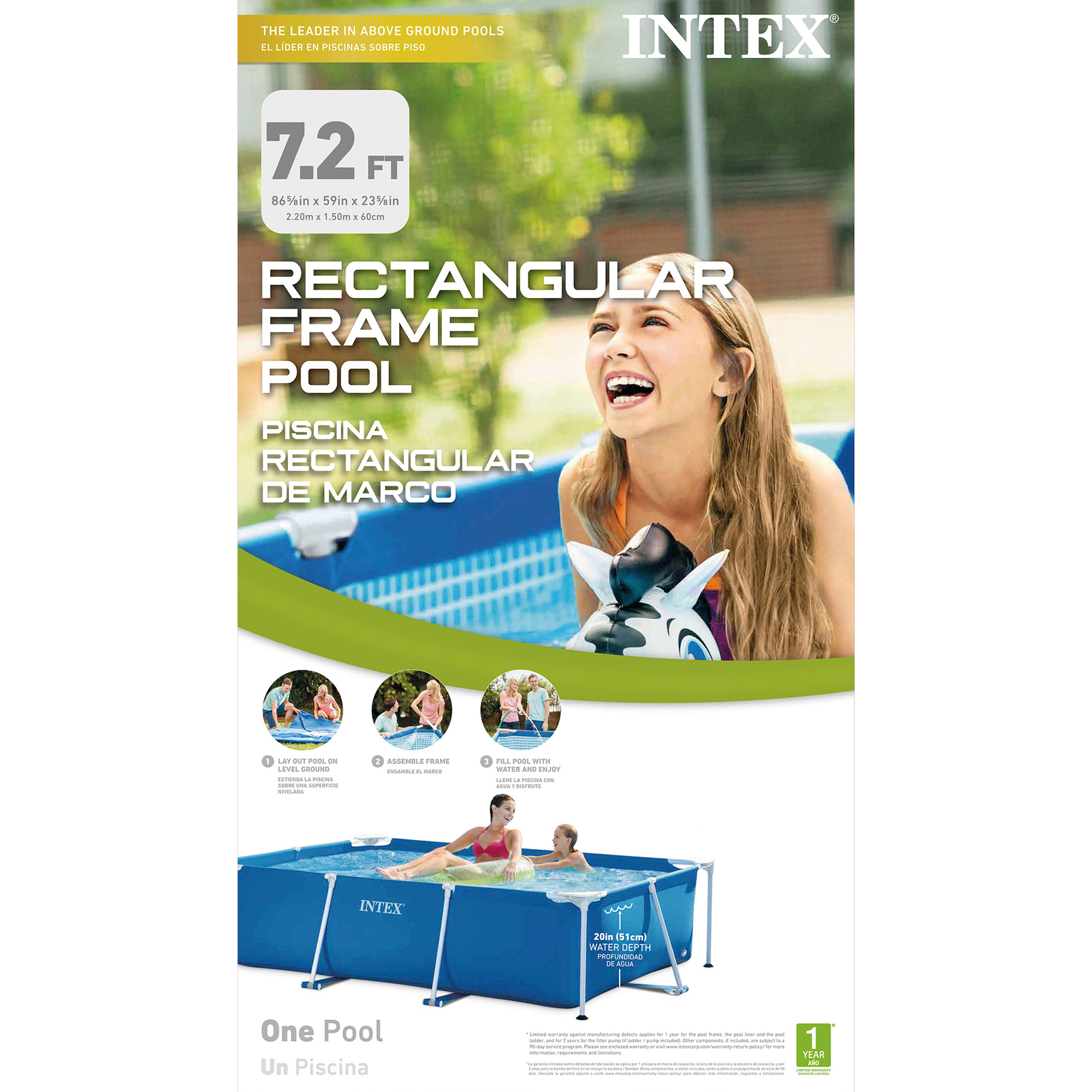 Intex 86″ x 23″ Rectangular Frame Above Ground Outdoor Splash Swimming Pool.Rectangle