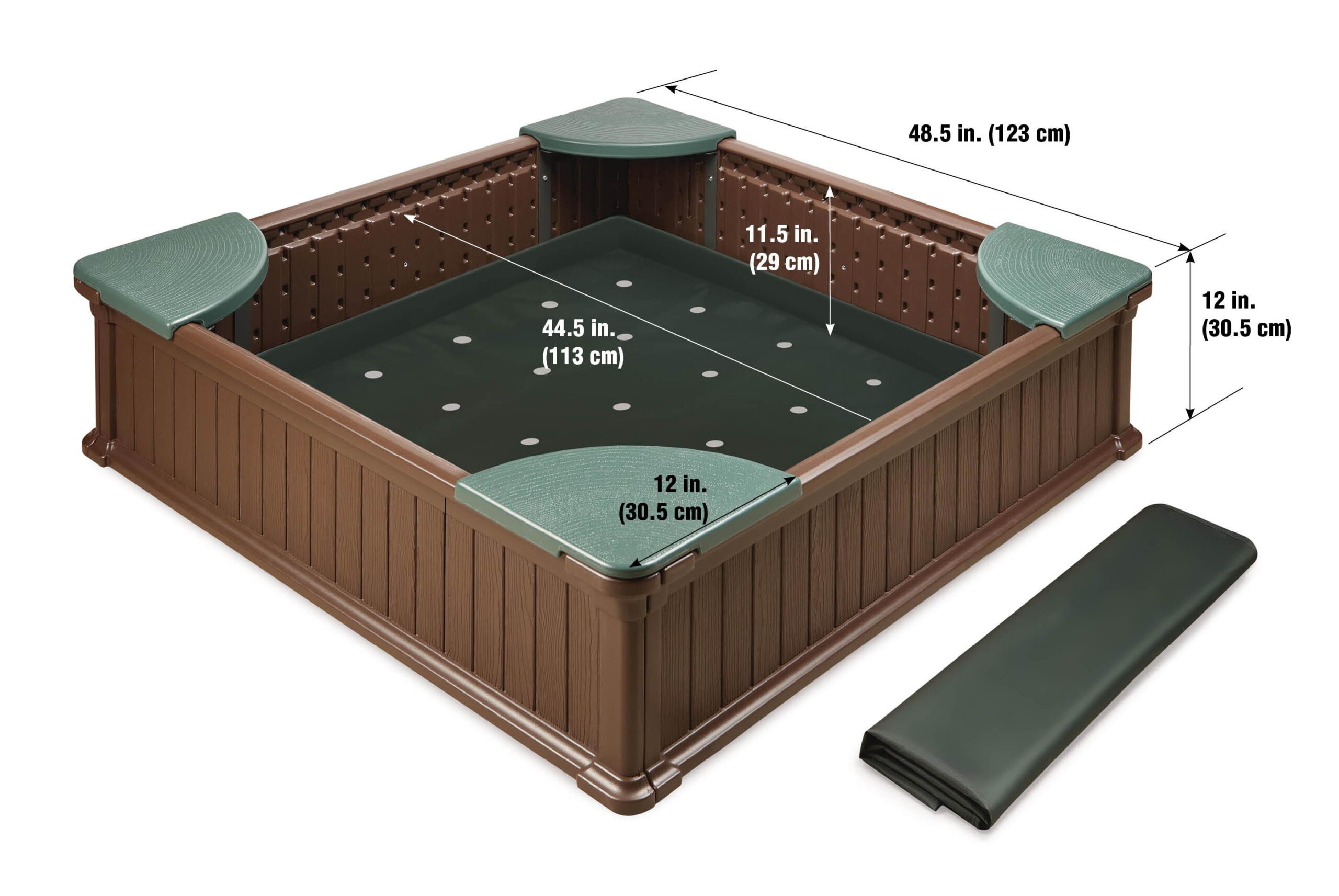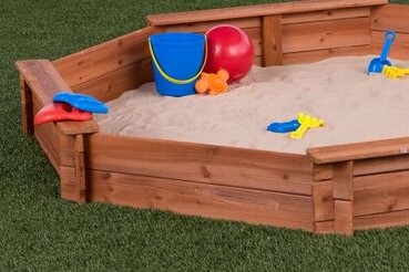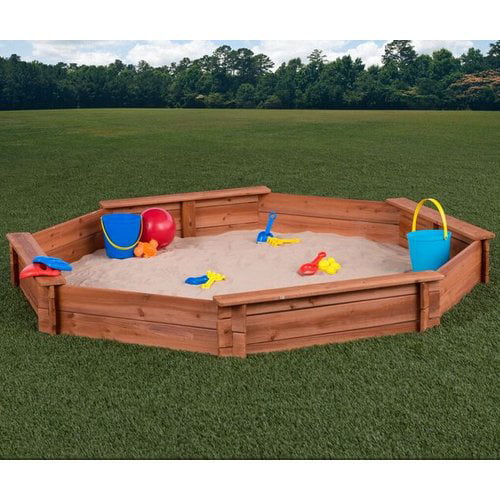 Octagon Wooden Cedar Sand Box W Seat Boards | Eco-Friendly Cover & Ground Liner | 84″ X 78″ x 9″ | Easy DIY Assembly | Holds 800+ lbs of Sand |