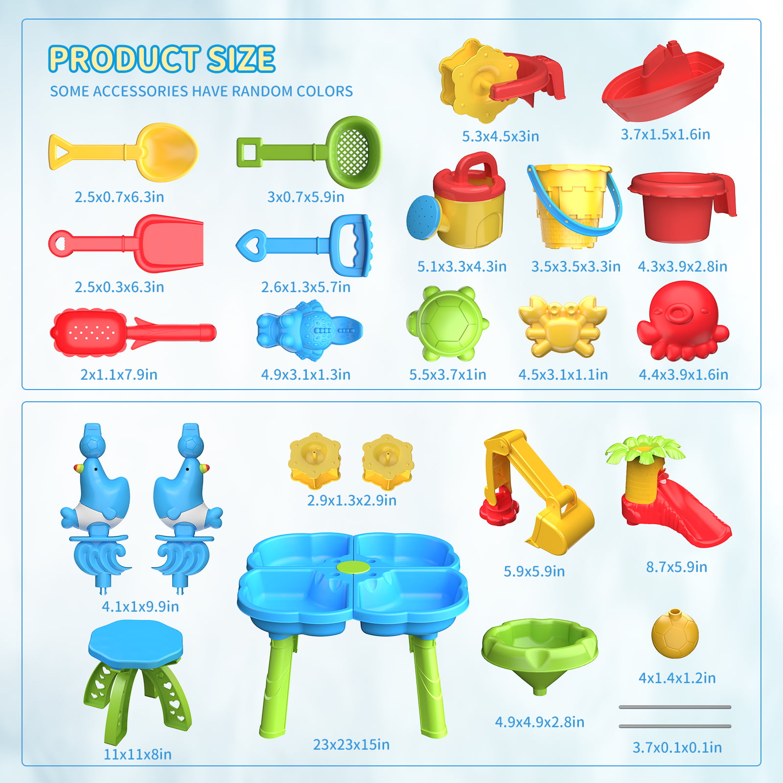 TEMI Sand Water Table for Toddlers. 4 in 1 Sand Table and Water Play Table. Kids Table Activity Sensory Play Table Beach Sand Water Toy for Outdoor Backyard for Toddlers Age 2-4 Gift