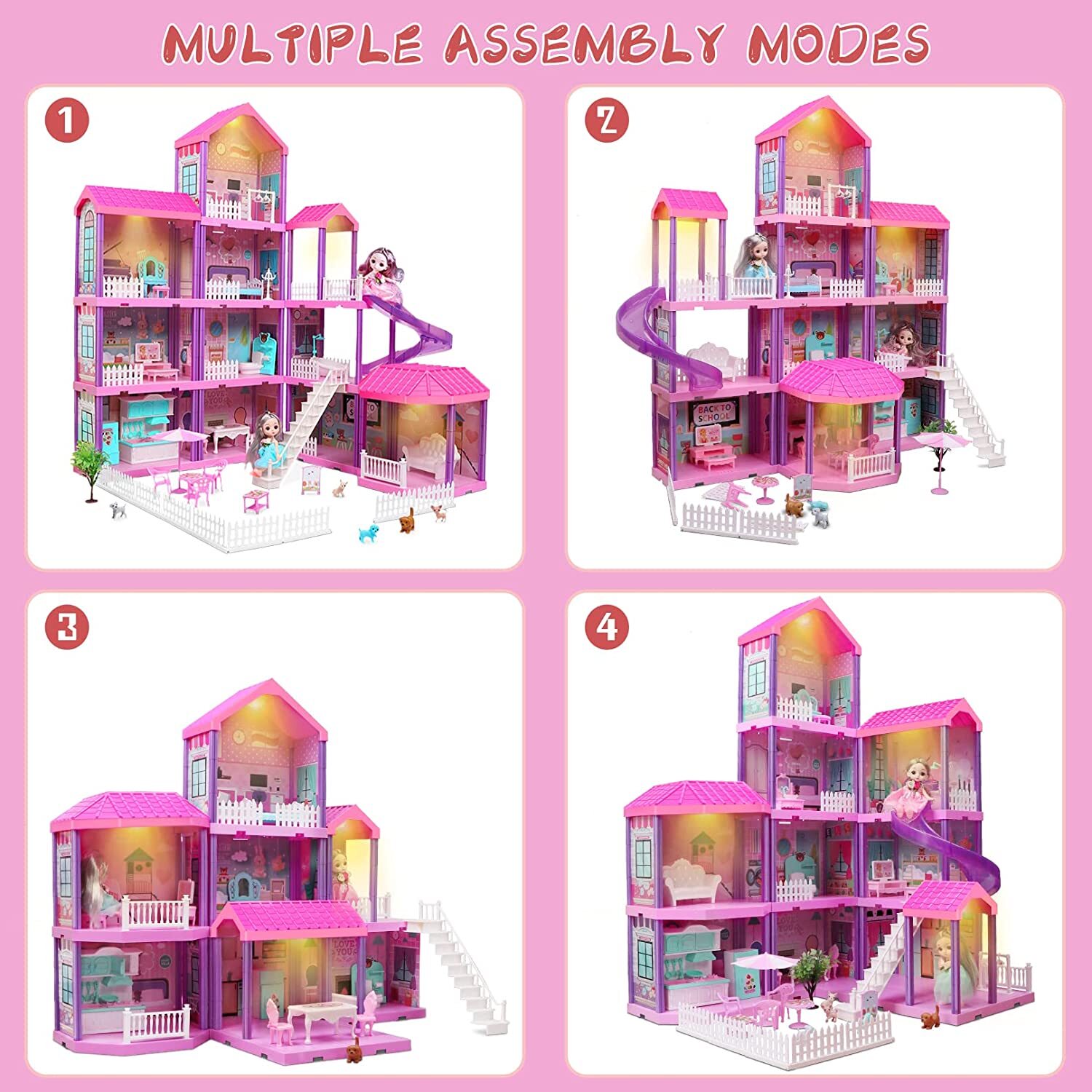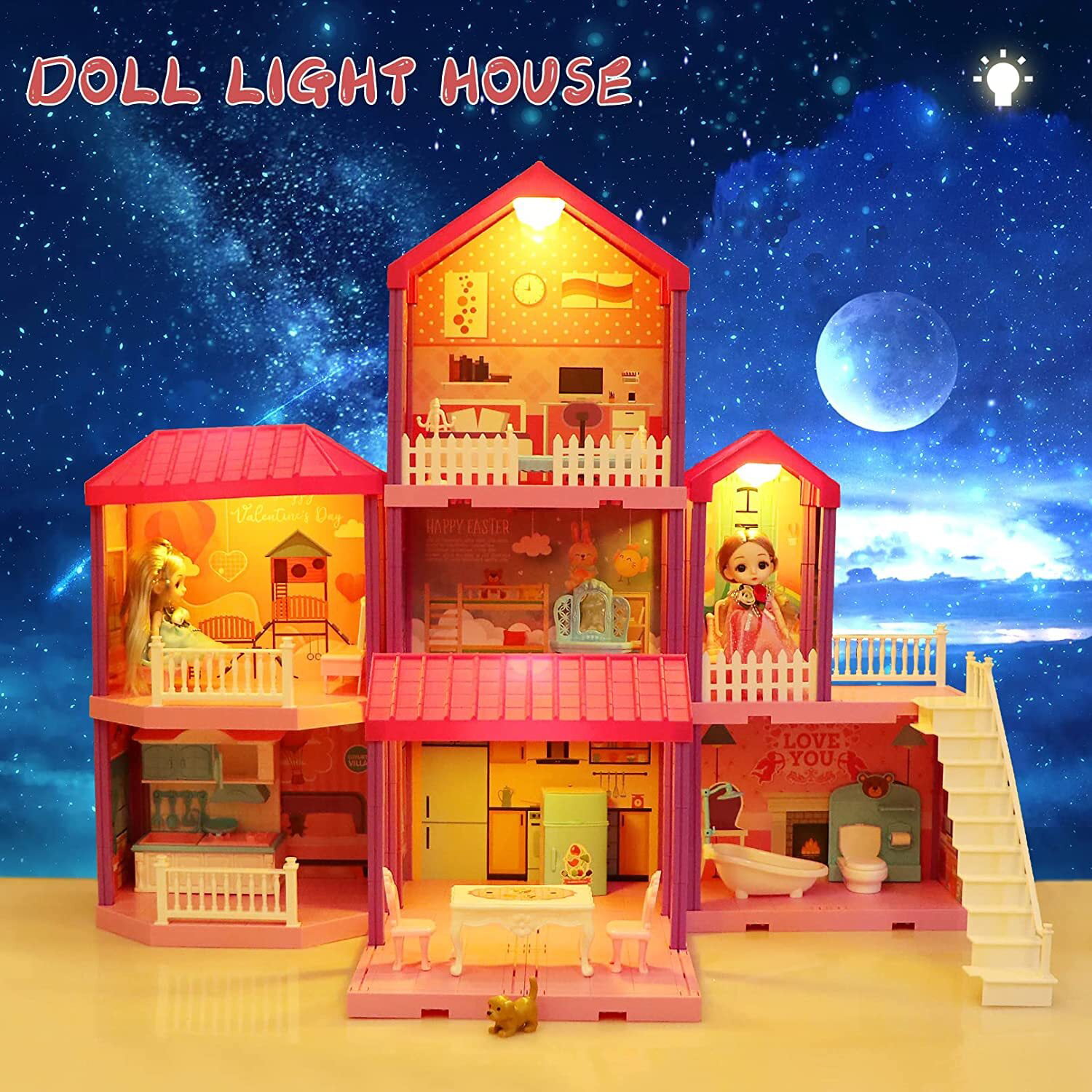 Beefunni 36 inch Dollhouse Playset Girl Toys. 11 Rooms with Doll Toy Figures Toddler Playhouse Christmas Birthday Gifts for 3 4 5 6 7 Year Old Girls